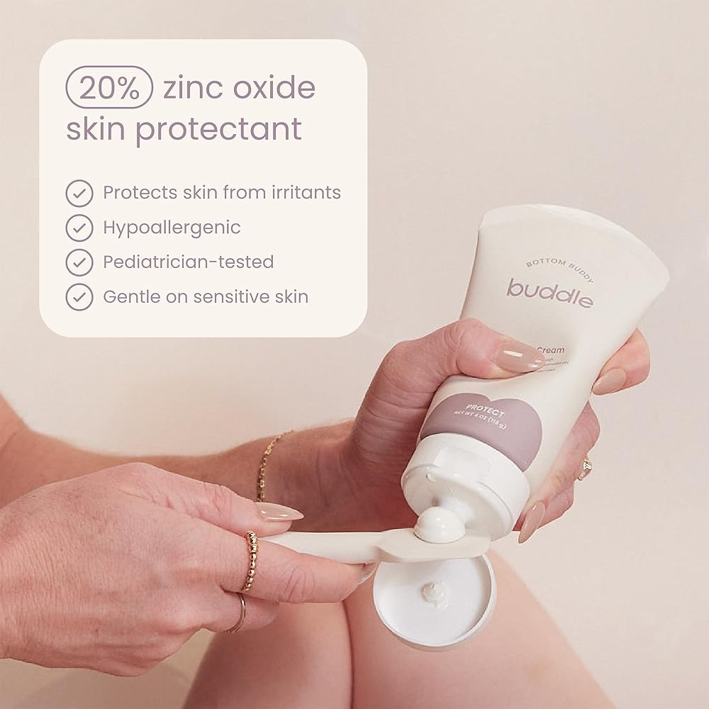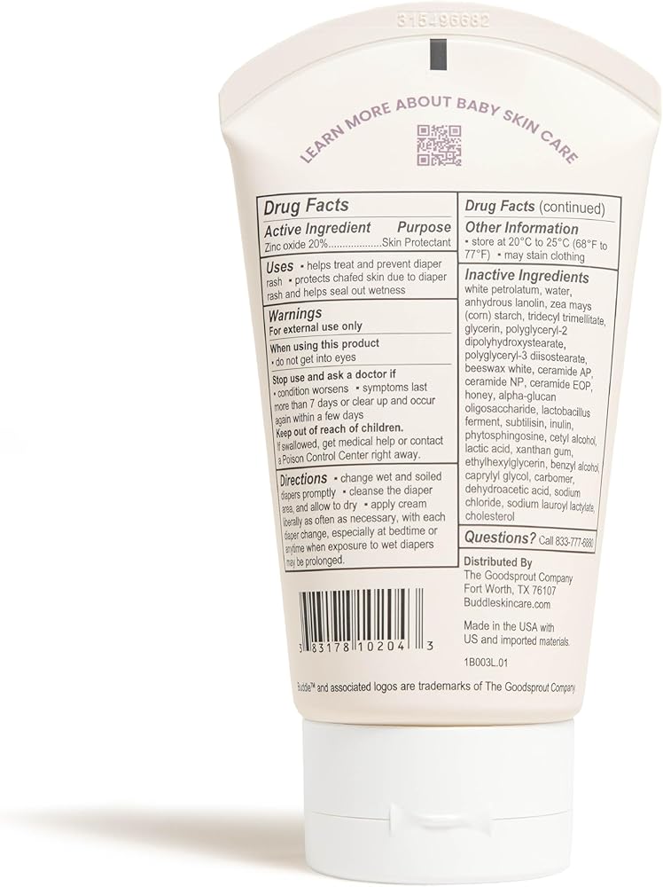 • Bottom Buddy diaper cream is luxuriously smooth, fragrance-free, and contains 20% zinc oxide. Bottom Buddy can be applied with every diaper change to prevent diaper rash and protect baby's skin barrier — what a great friend.