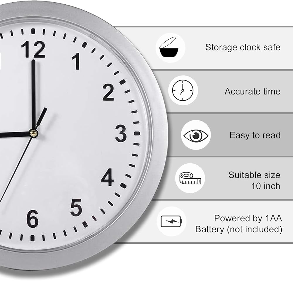 This 10" wall clock is no ordinary timepiece for your home or office. It boasts a hidden secret compartment with three shelves to securely store your valuables. Its classic design makes it a perfect match for most house decorations.