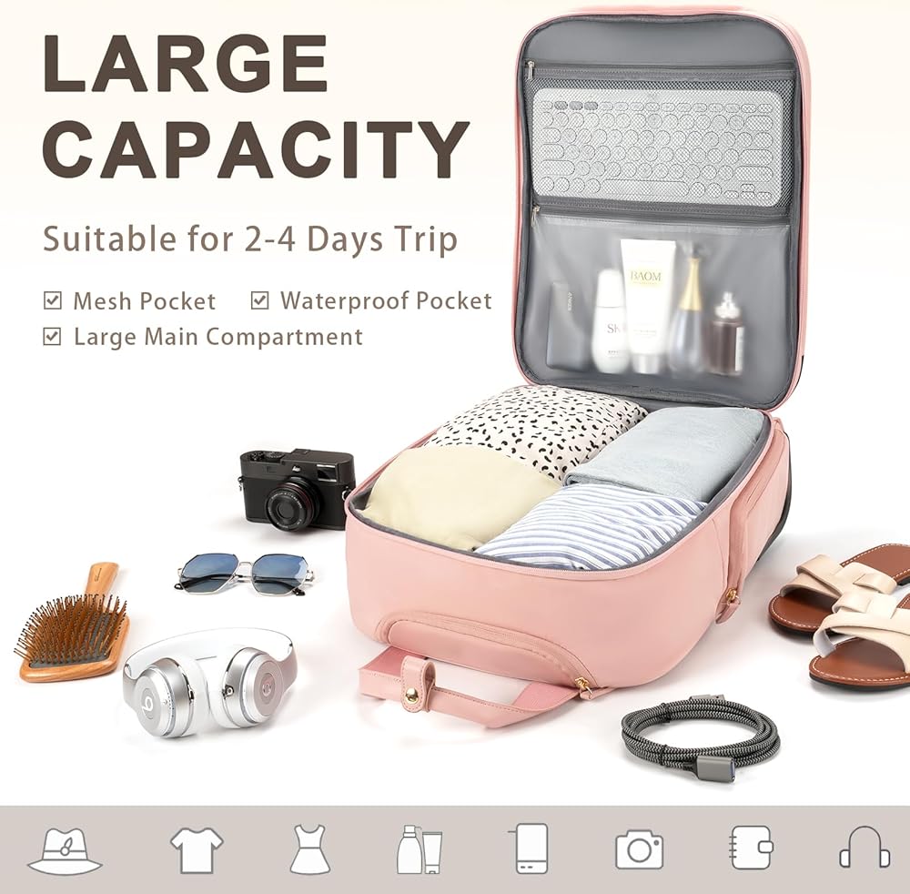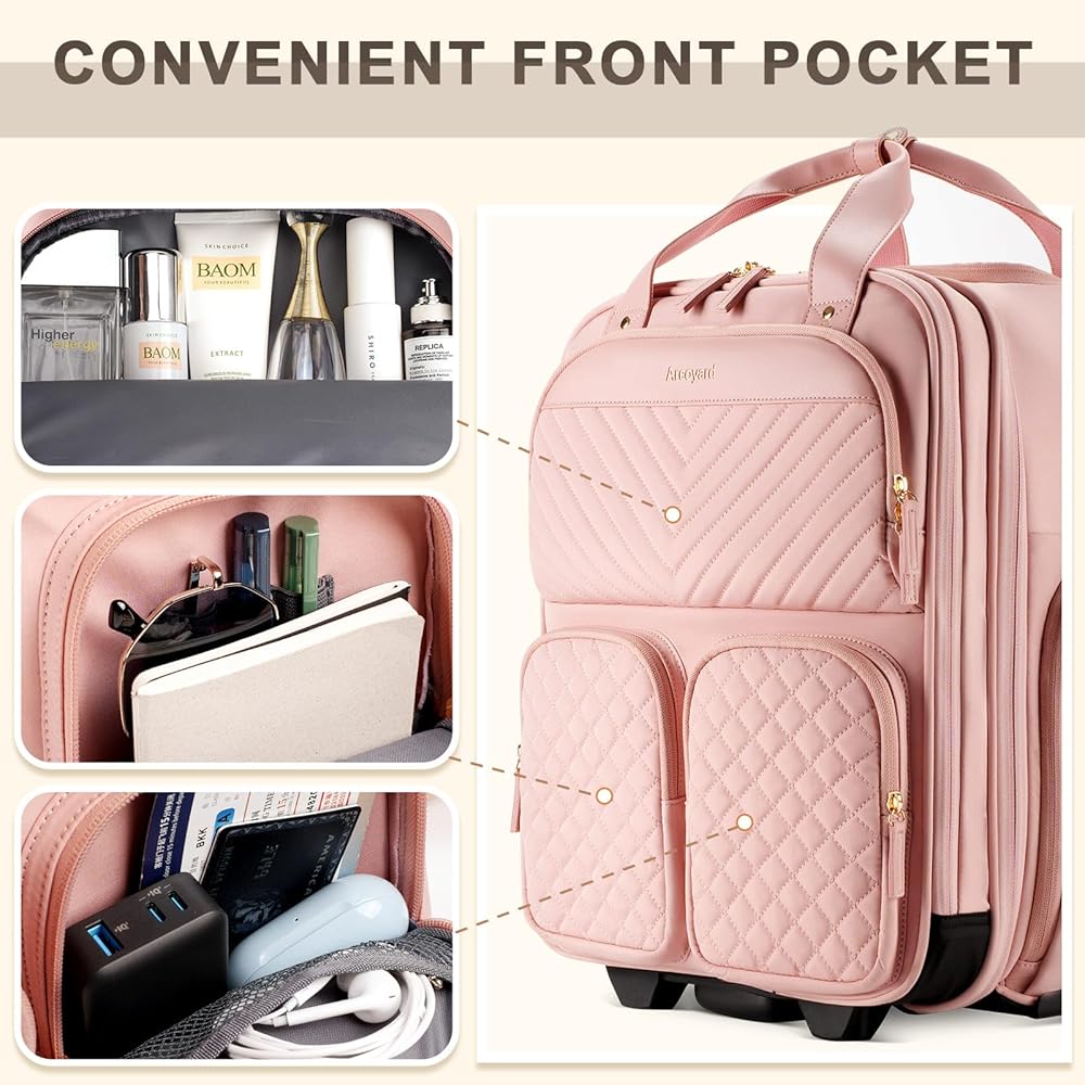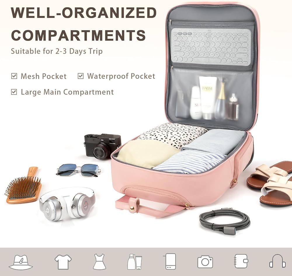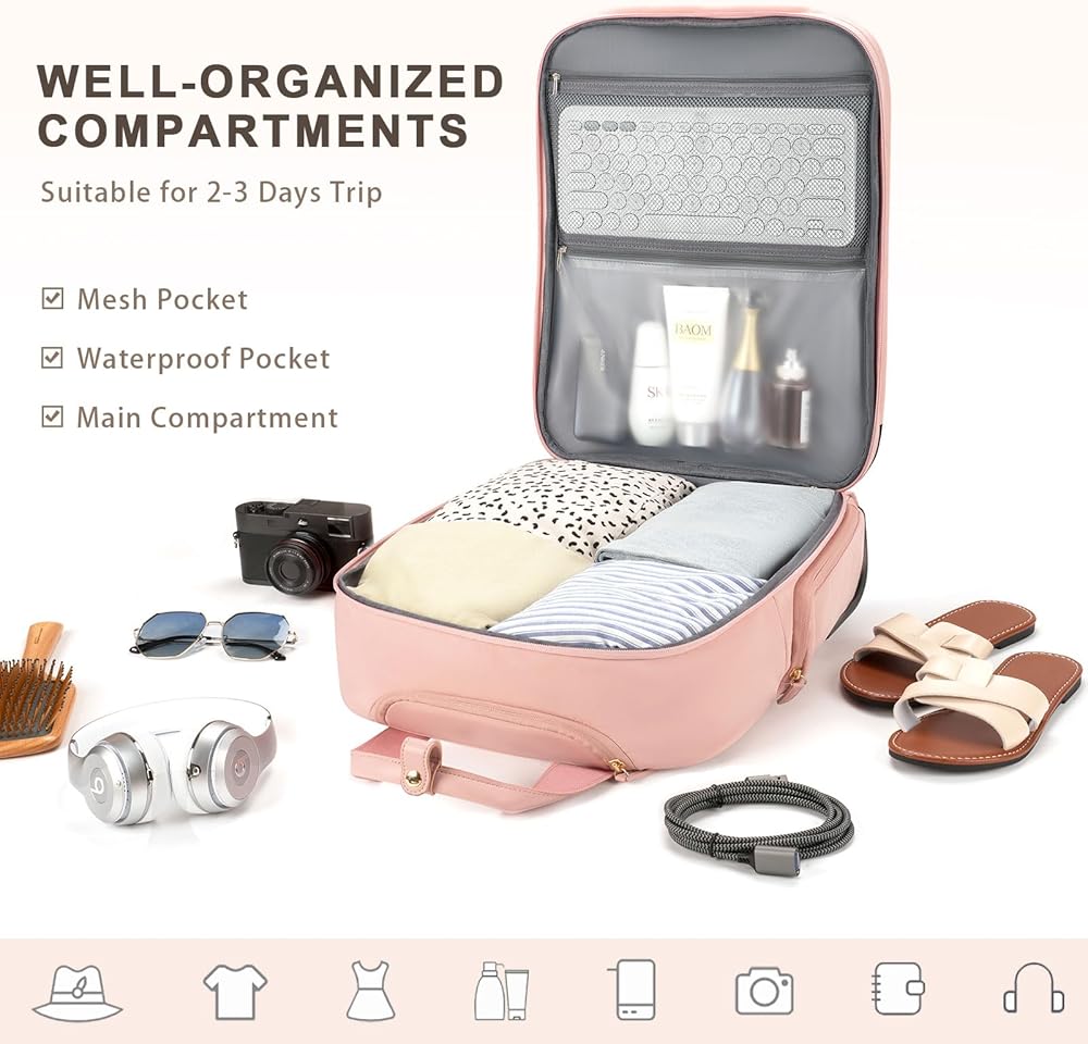 【Airline Approved】Carry on luggage with wheels measures 17.4" H x 13.2" L x 7.5" W (including the height of the wheels), meeting approved airline carry on luggage dimensions. It easily fits into overhead bin and under the seat. This underseat carry on luggage with wheels complies with major airlines' published carry-on luggage and personal item size requirements, including Delta Airline, Southwest Airline, Spirit Airline and Frontier Airline ect.