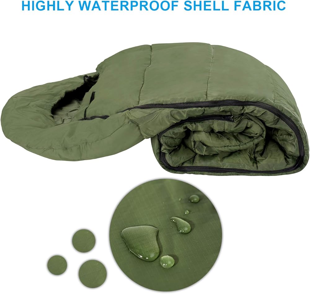Light weight & Portable: It's very easy to be put in the stuff sack after your usage. Since it's only 3.5lbs, the mummy sleeping bag is very light weight and protable. The bag is acceptable both machine washing and hand washing.