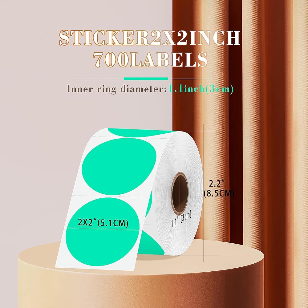 2 inch Circle Direct Thermal Labels -700Pcs per Roll, 1.1 inch core, Self-adhesive, No Ink Toner or Ribbons Needed! Waterproof, Oilproof, Tear-resistant, Alcohol-resistant. BPA and BPS-free.