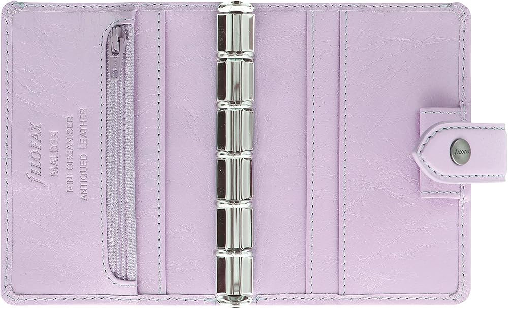 The epitome of relaxed style, the Malden organizer is set apart by its tactile, vintage-look, full-grain buffalo leather and contrast stitching. A contemporary take on a retro design, this premium range has a rustic and casual charm on its own. Features a five-ring binder, luxury cotton cream indices, notepaper, contact sheets, and multilingual, cotton cream Week-on-Two-Pages calendar diary. Malden includes one leather pen loop, one vertical zip pocket, and four card pockets. Compatible with additional Filofax refills and accessories available in Mini size. Stitched edging with rounded corners and strap closure round out the meticulous design of the Malden Collection. Over the years, the Filofax organizer has evolved from a simple loose-leaf system into an indispensable everyday accessory. The Filofax logo promises authenticity and the finest craftsmanship. It's a hallmark of impeccable quality, trusted worldwide, since 1921.