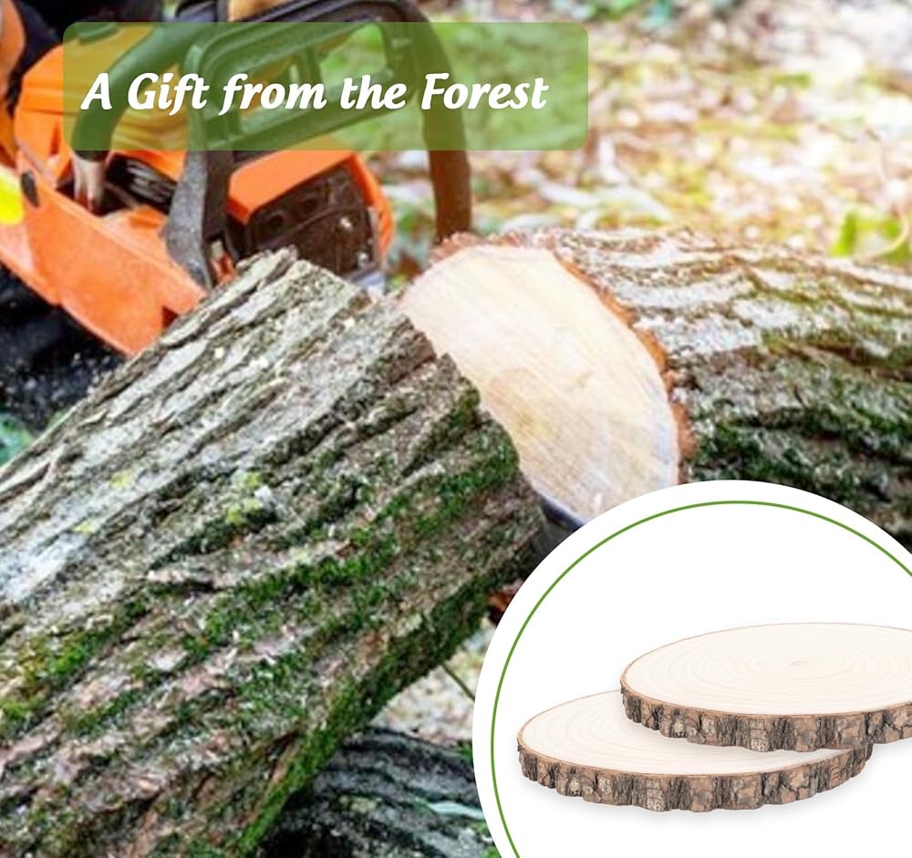 【Large Size】 2 round pieces of wood slices are about 8-9" in diameter and 0.59" in thickness. It is particularly concern that the wooden circles are slight difference in shape and size ,which is caused by the retention of raw materials without processing.