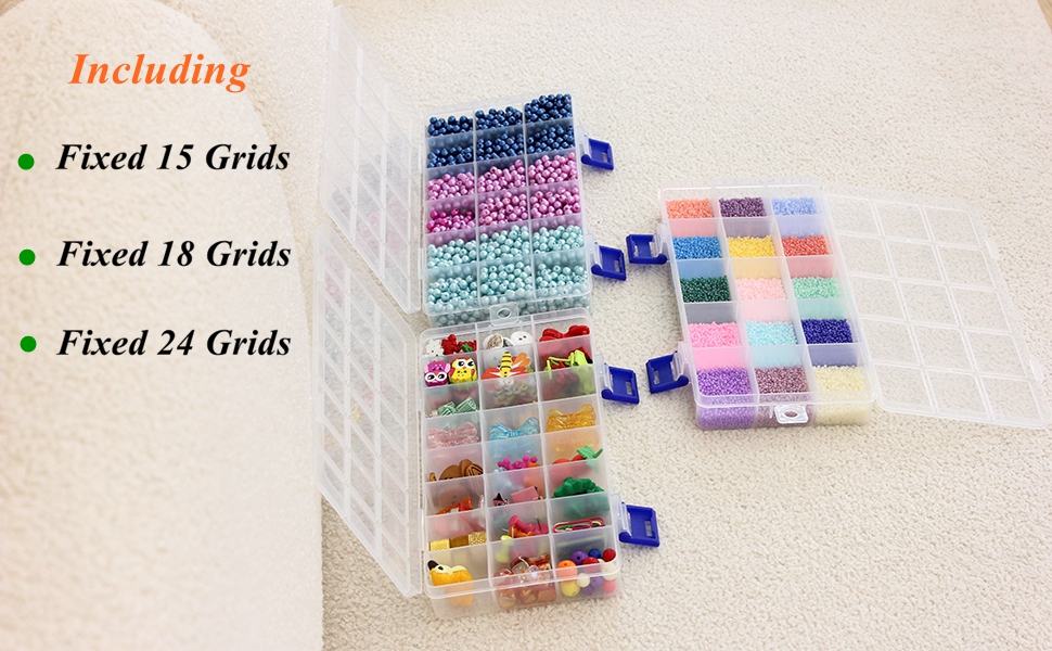 To collect and sort small items, the fixed grid version is better than removable one. The fixed feature means it has not gap between two grids, you don't worry the beads are migrated and mixed up each other