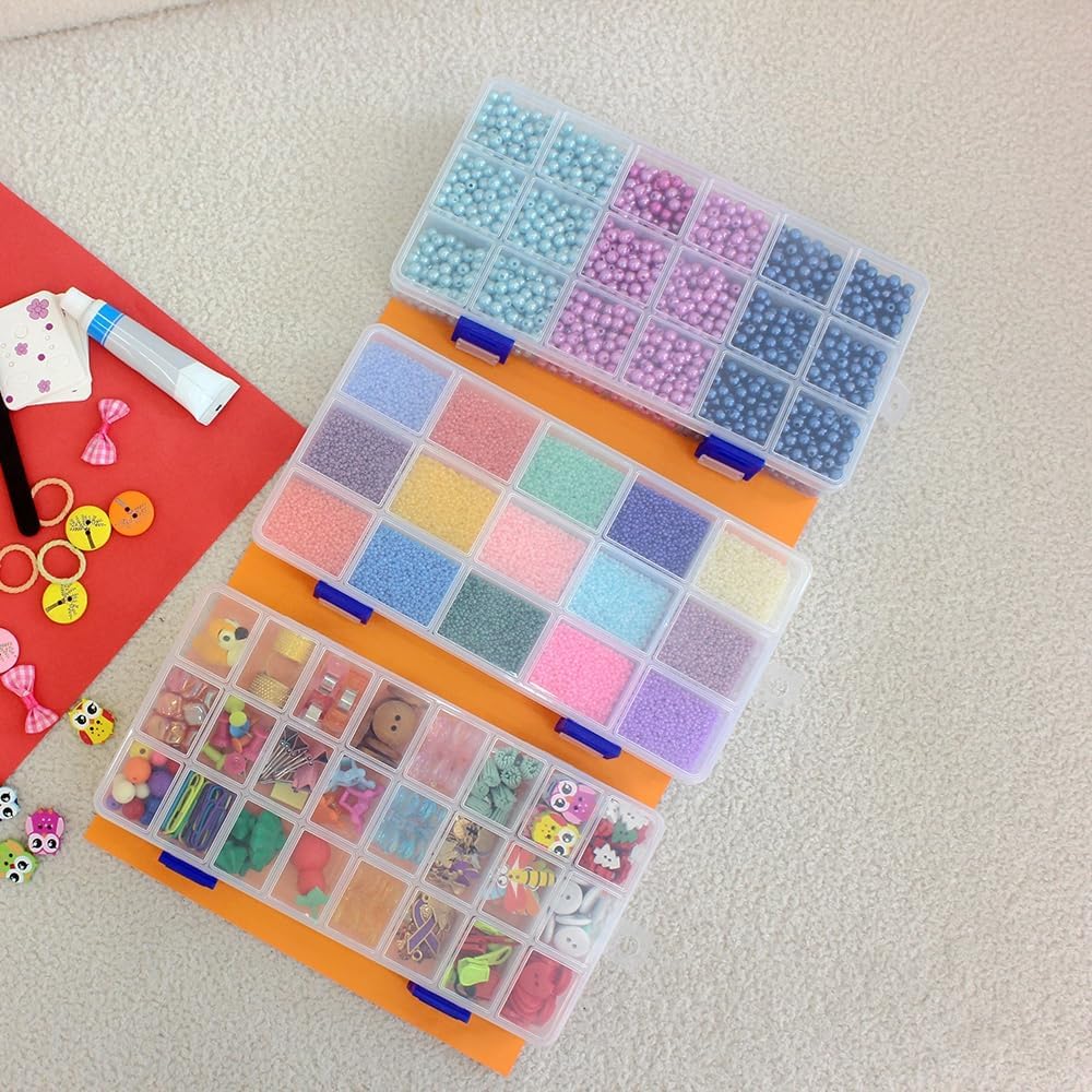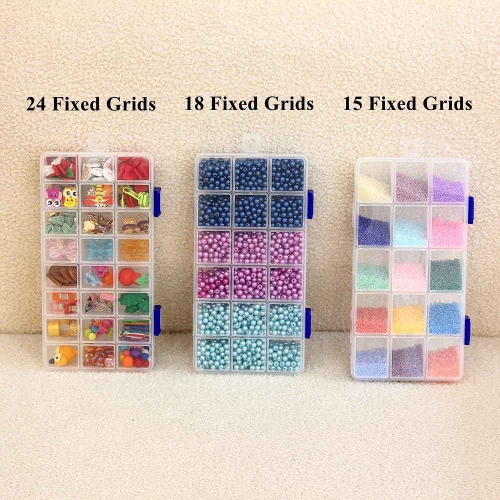 BangQiao 6 Pack Clear Plastic Storage Box with Fixed Grid, Transparent Organizer Divider Case for Seed Bead, Tiny Button, Small Part, Art & Craft Supplies (2 x 15 Grids + 2 x 18 Grids + 2 x 24 Grids)