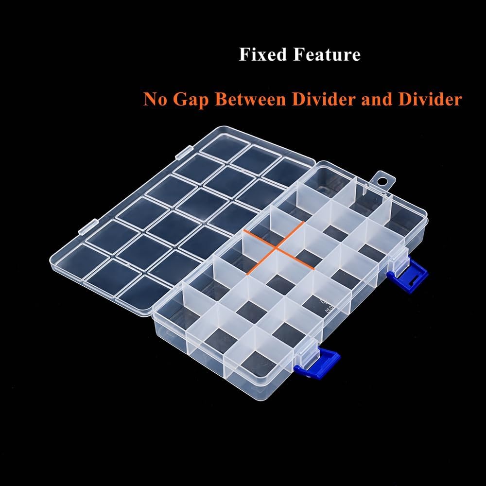 Just buy one set, you can get 6 pack clear plastic storage box with assorted fixed compartments. Each set includes 2 pcs for fixed 15 grids, 2 pcs for fixed 18 grids and 2 pcs for fixed 24 grids. An useful combination for your project