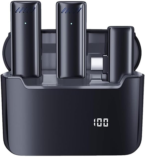 ♪【Type-C Interface Receiver】: The microphone's receiver is equipped with a Type-C interface, offering plug-and-play convenience. The transmitter has a built-in 60mAh lithium battery that provides about 6 hours of working time after a full charge.