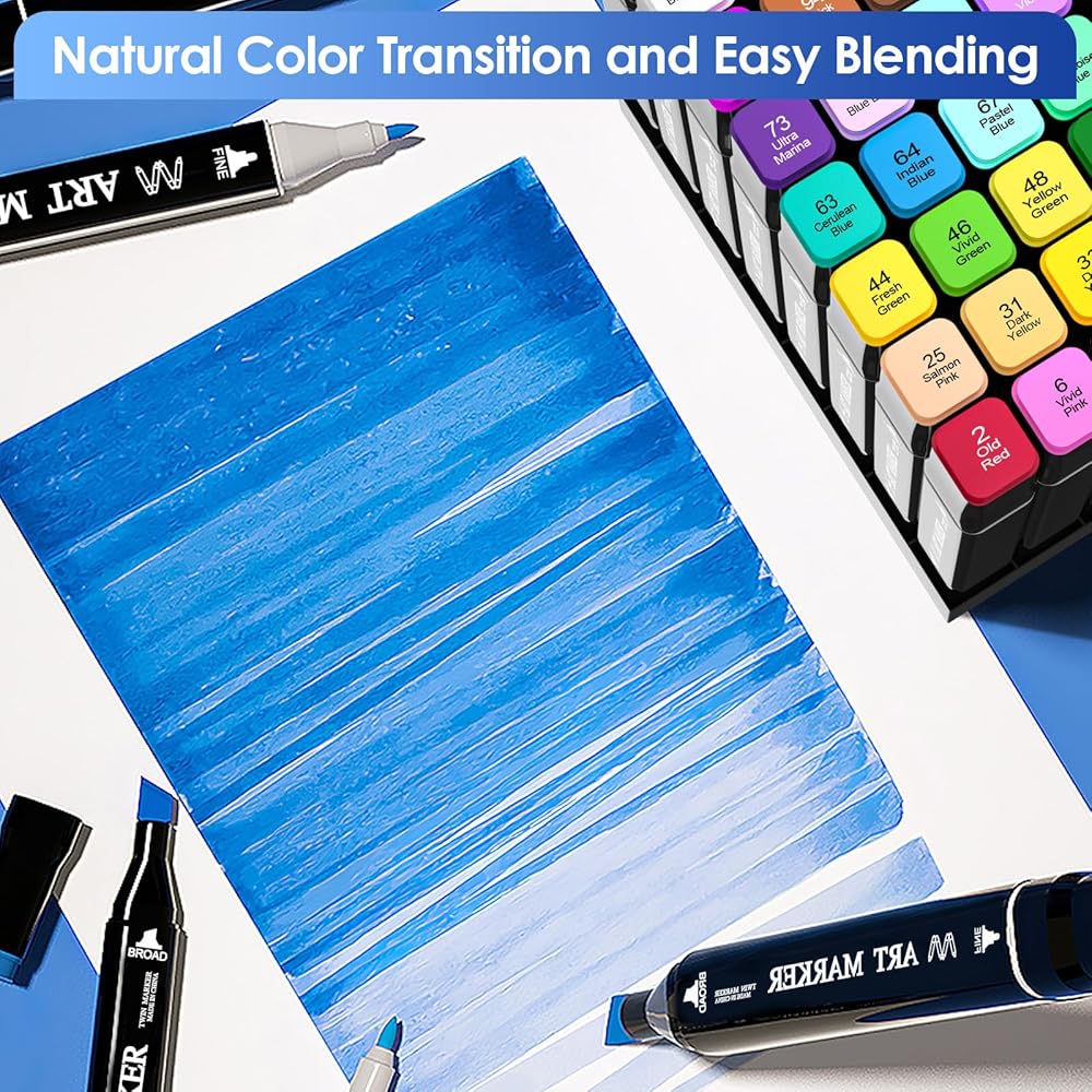 【ADVANCED CRAFTSMANSHIP OF INK】The highly pigmented and vibrant markers ensures rich color saturation and enables colors to be applied cleanly, smoothly and evenly. The quick-drying ink will not stain clothes and hands, your artwork will never also fade or smudge with time. NOTE: Alcohol based markers need to write on a specific mark paper so that it doesn't bleed to the next layer. PLEASE PUT THE CAP IMMEDIATELY AFTER USE TO PREVENT THE MARKER INK LOSS.