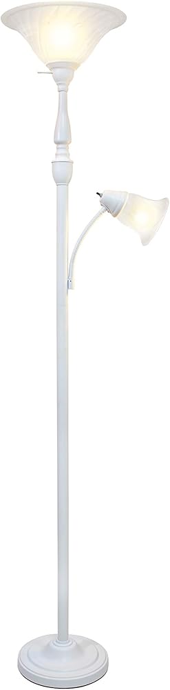 Elegant Designs LF2003-WHT 2 Light Mother Daughter Marble Glass Floor Lamp, White