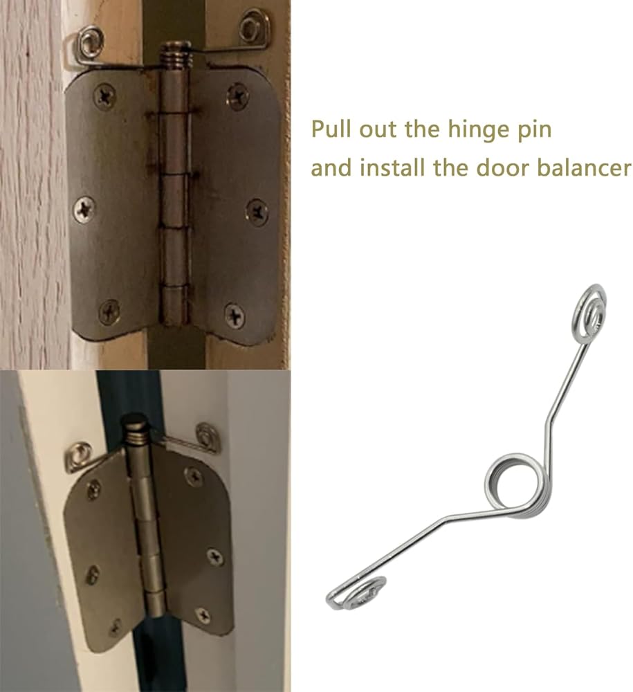 The set includes 4 hinged door stops, no door wedge required, new, high quality and unused. Size: The wire diameter of the stainless steel door automatic opener is approximately 0.06 inches, and the height of the coil is approximately 0.32 inches Material: The hinge door stopper is mainly made of stainless steel, reliable and reusable, sturdy and stable, not easy to break or rust, and can serve you for a long time. Easy to use: The installation and replacement of the door opener are simple and convenient. You can directly open the hinge pin, place the door opener on top, reinstall the hinge pin, or fix it to the wooden door with screws, bringing you a good user experience This spring door stop can prevent scratches and damage to your door and wall, making it a great choice for protecting them and ensuring that the door remains open. After sales: We will provide you with good after-sales service. If you have any needs, please feel free to contact us and we will reply to you within 24 hours