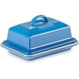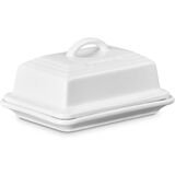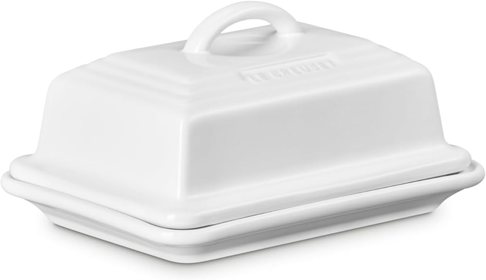 Decorative yet functional, this stoneware butter dish can go from refrigerator to microwave to table. The European style is designed to hold two sticks of butter.