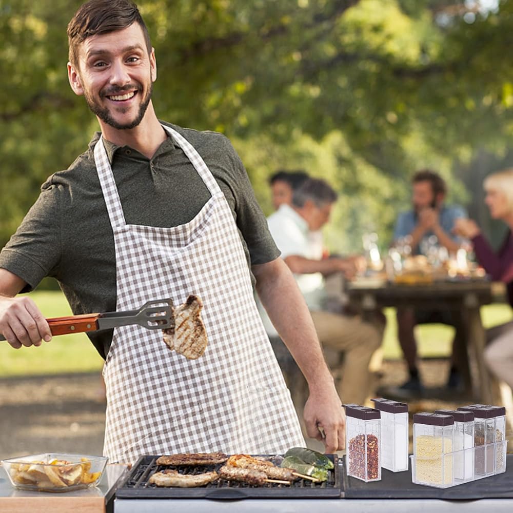 - Portable Design - Set of 6 spice containers with a tray, compact and portable. Perfect for BBQ, camping, hiking, barbecue and travel.