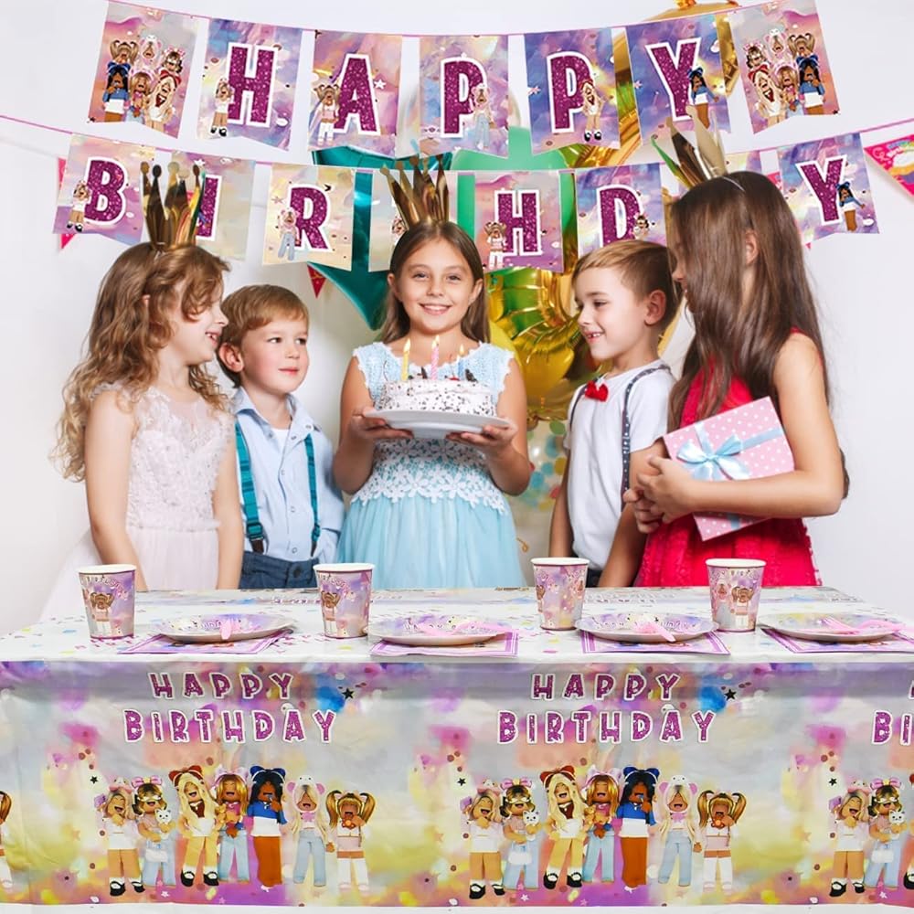 ☆Robot Girls Birthday Party Tableware Supplies: You will get 1 piece of tablecloth cover,1 set of happy birthday banner, 20 pieces of 7 inch plates and Napkins,perfect party decoration for 20 guests game themed party.