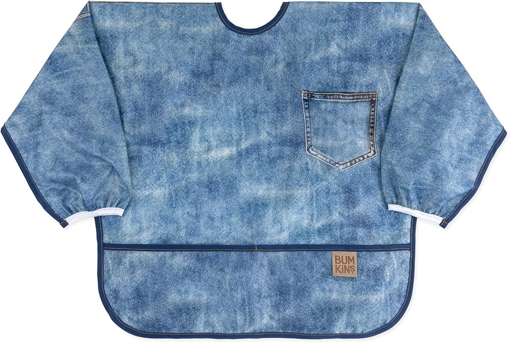 SAVING YOU FROM THE MESS – Perfect for self-feeding, the long sleeve bib offers generous coverage to help you save an outfit; made from Bumkins' original waterproof fabric – 100-percent polyester embedded with TPU; machine washable for easy cleaning