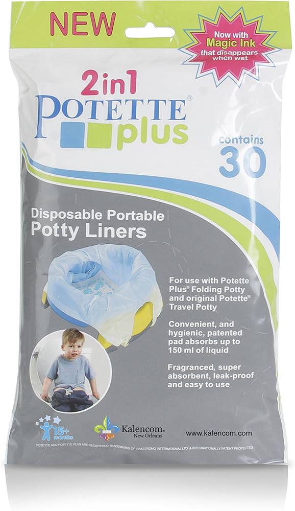 Kalencom Potette Plus Value Pack Liners. Kalencom Potette Plus 30 Liner Refills value pack. Disposable liners hold up to 5 ounces of liquid; Liners are lightly scented to absorb odors.