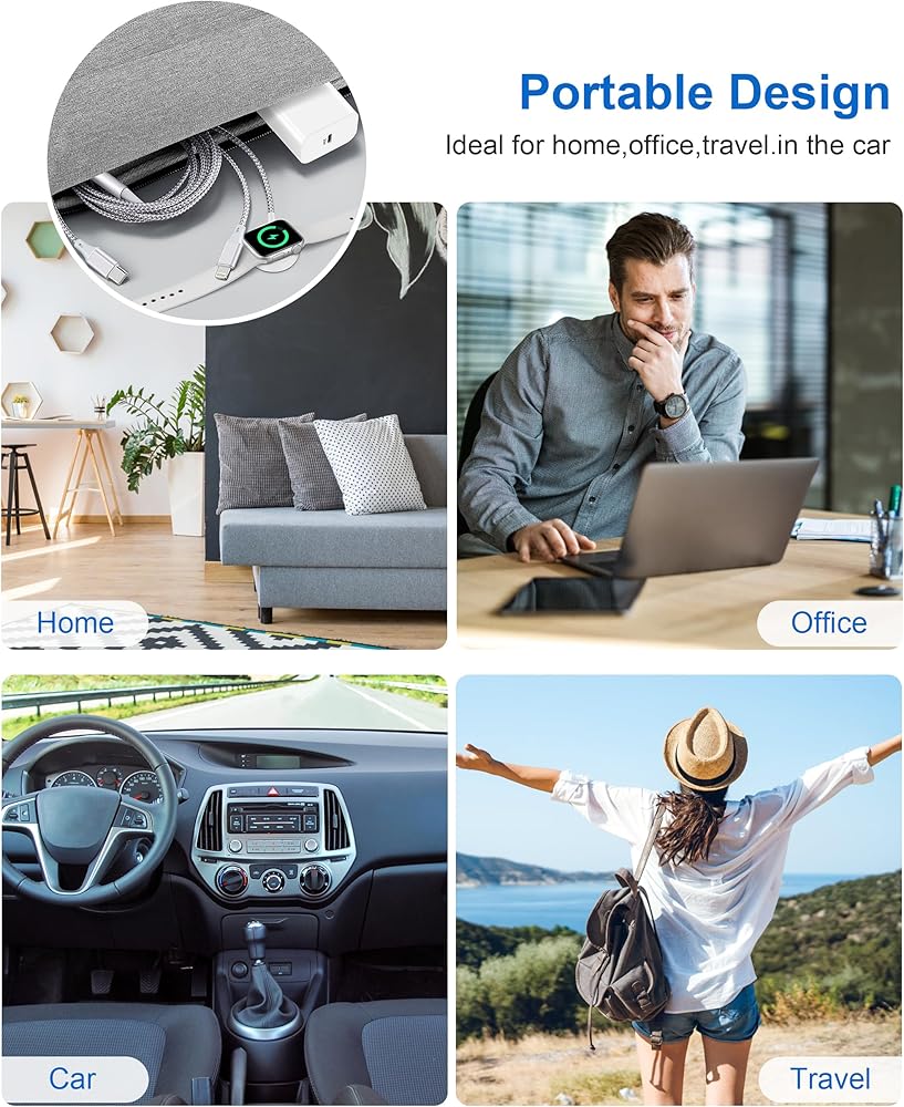 【Safe and Reliable】: This iWatch charger fast charging cable is made of high-quality pure copper wire to avoid shortening its life due to aging and use, it has passed 12,000 times of bending tests. Built-in multiple protection system, it can avoid over-heating, over-voltage, over-charging.