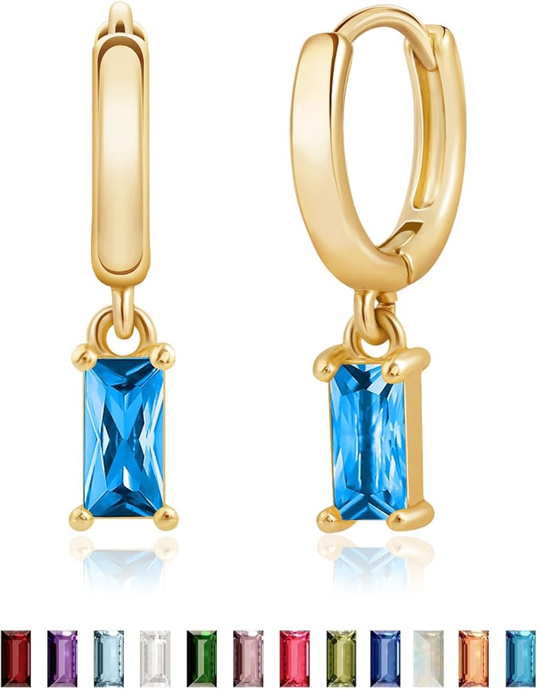 Gold Birthstone Earrings for Women Green Emerald Earrings for Women - 18K Gold Plated Hypoallergenic Earrings for Women - Huggie Hoop Earring with Crystal Dangle for Birthday Everyday Wear