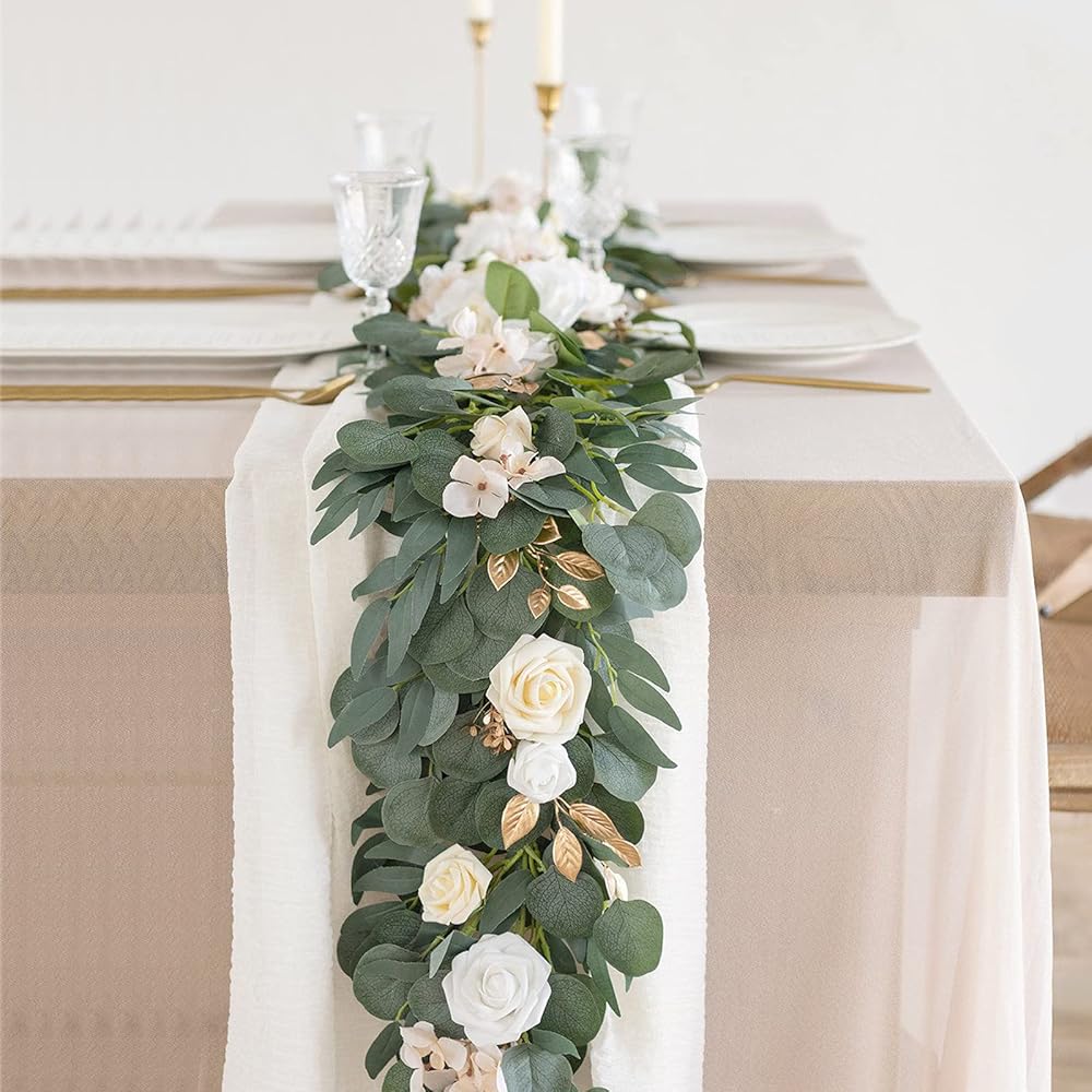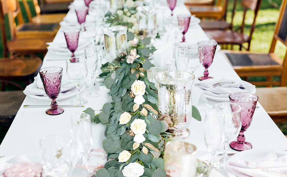 Usage: The artificial greenery garland is perfect for banquet table, wedding wall/arch, greenery background decoration. It can be used for both indoor and outdoor decor.