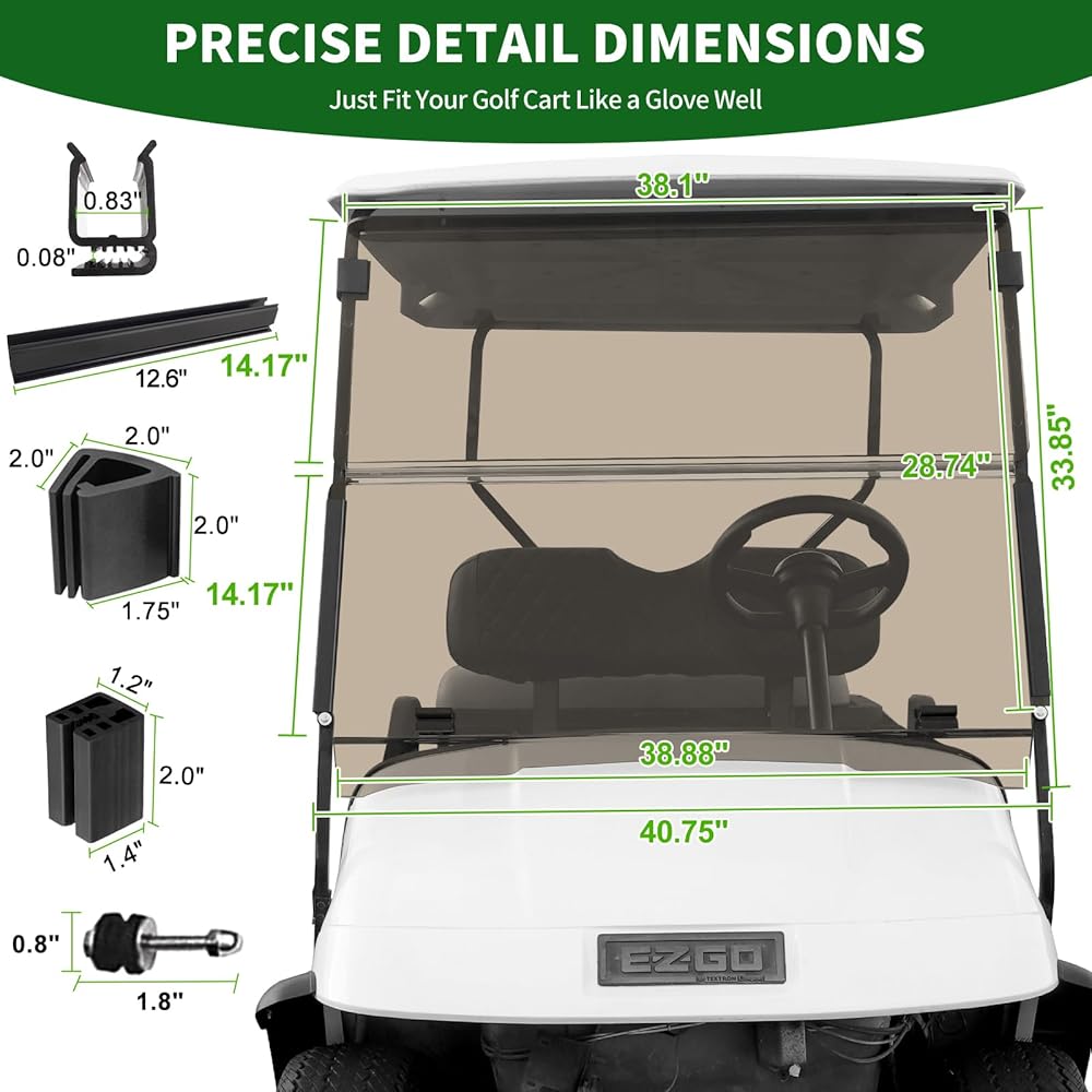PERFECT FITMENT: The golf cart windshield ONLY FITS 1995-2013 EZGO TXT gas & electric golf cart with 3/4" font struts tube. Confirm the year, make, model and tube size of your golf cart before purchasing. [Will NOT FIT EZGO TXT(2014-up), Medalist(2014-up), EZGO Express L6, Express 4×4, Express S6, S2, S4, ST400, EZGO RXV, Elite, Freedom, EX1, Marathon(1975-1994), Cushman, Workhorse, Valor, Shuttle, Textron, Evolution, Western, Kandi, Melex, Coleman.]