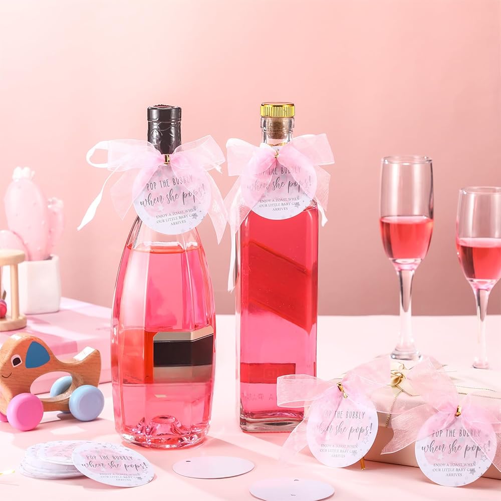 Tying these baby shower tags to bottles as a gift that everyone will remember and makes your shower look like you put in way more effort than you did.