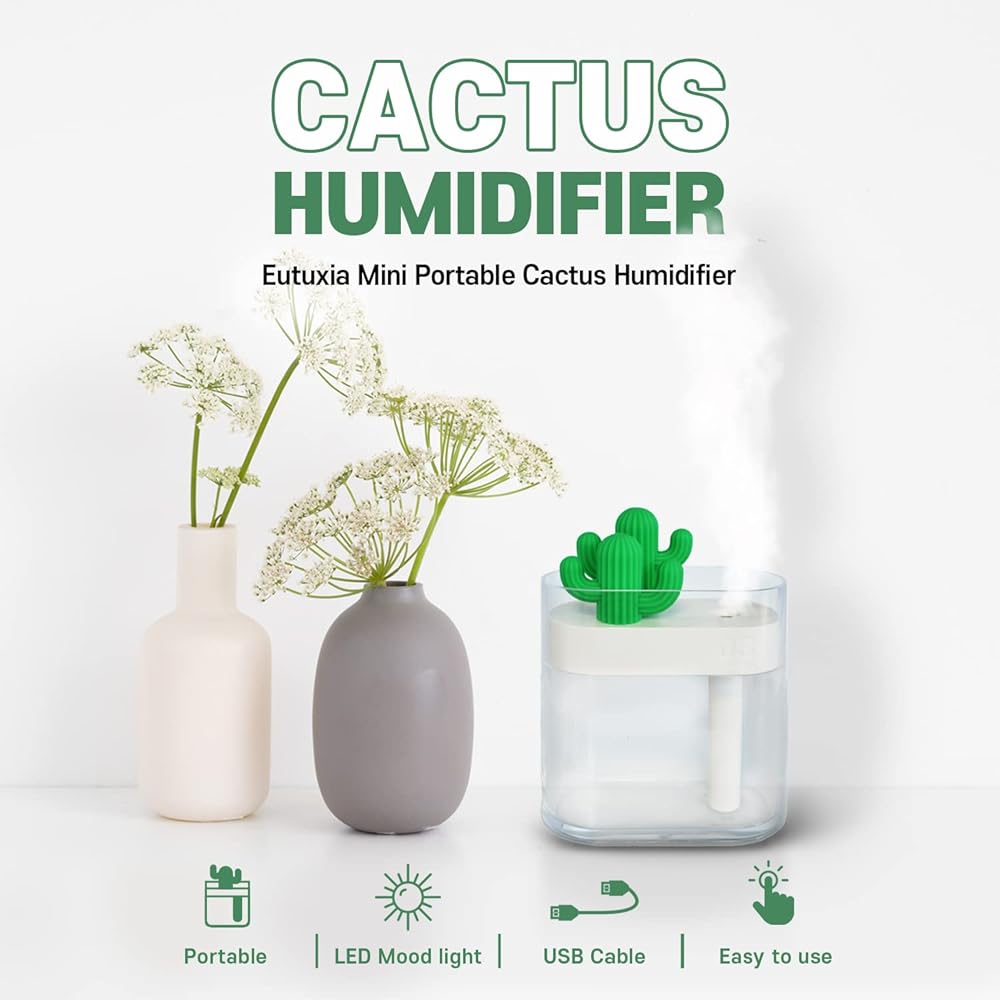 Eutuxia Mini Portable Cactus Humidifier with USB Cable [Cactus]