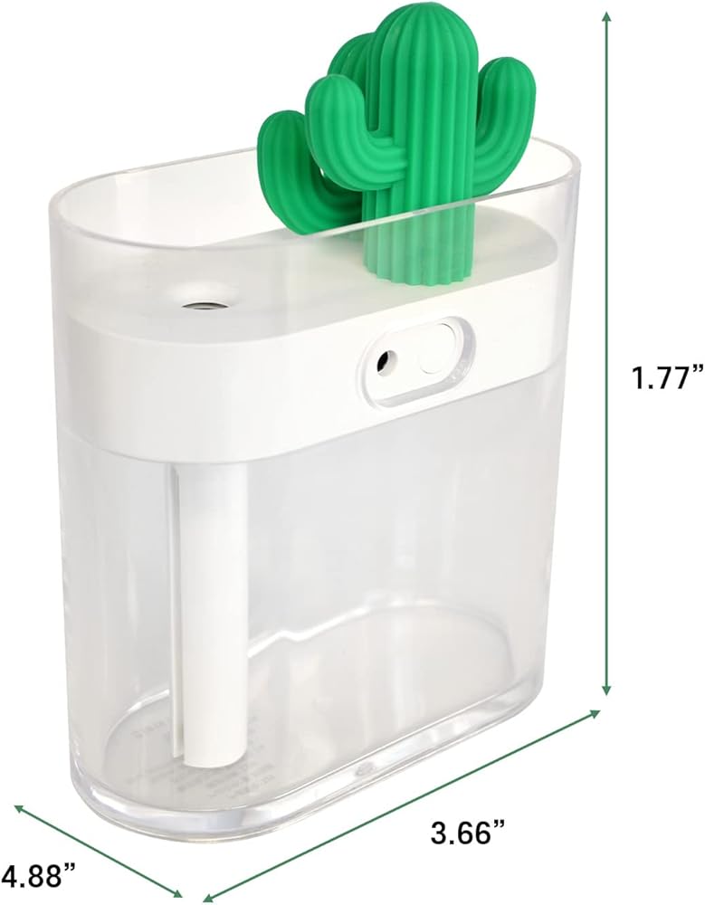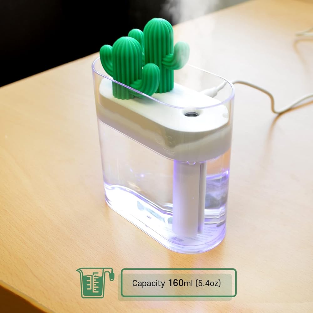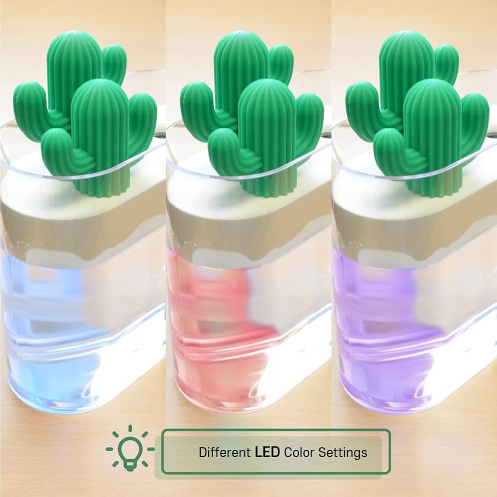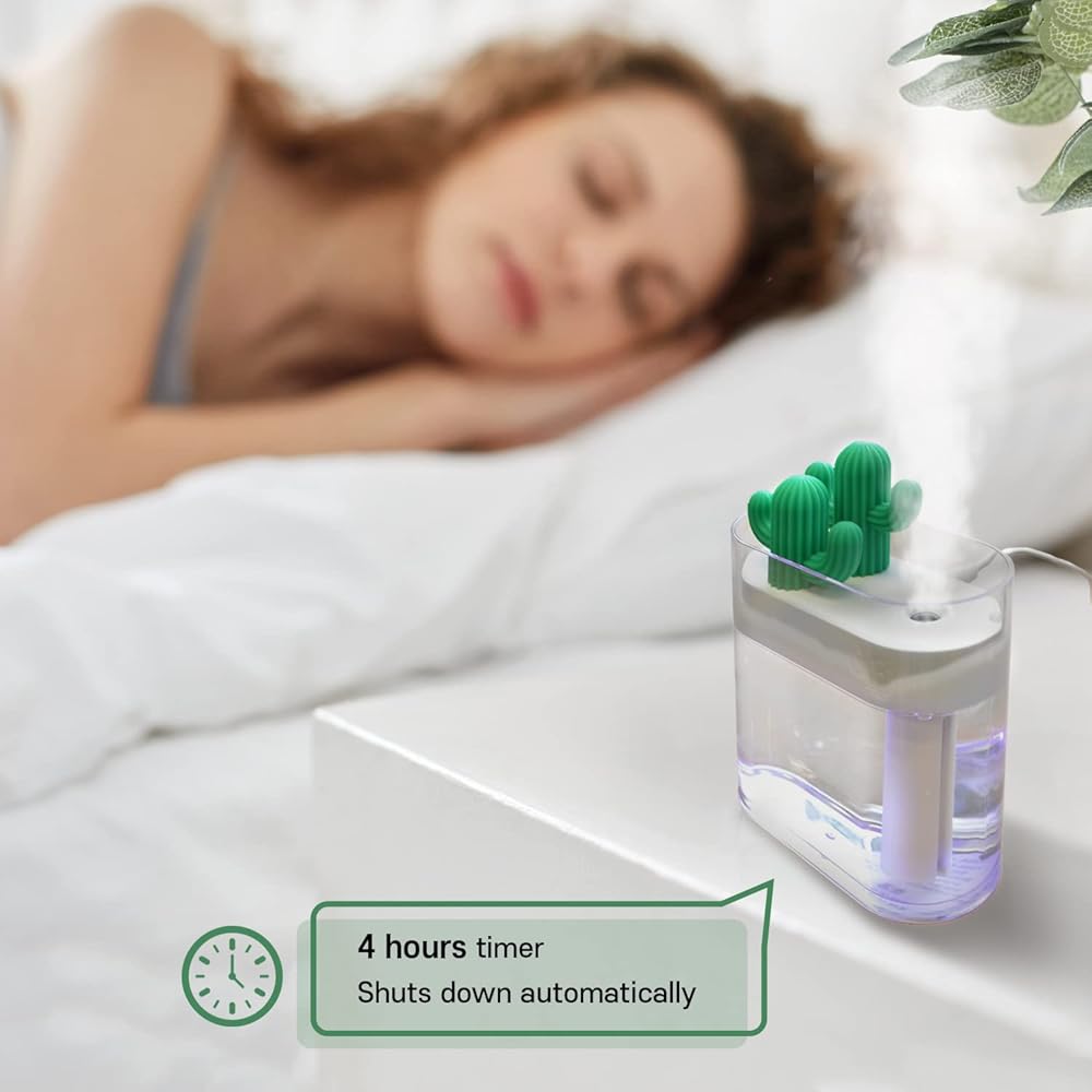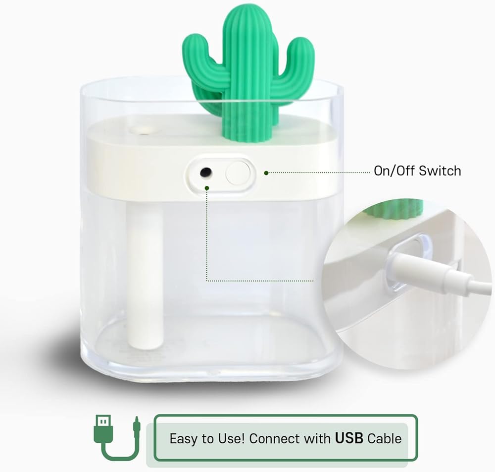 LOVELY CACTUS DESIGN: Cute cactus to your room and add green that will bring happiness to your home! Many will find this humidifier an essential part of your good night's sleep. Design your room or office with this portable cute humidifier.