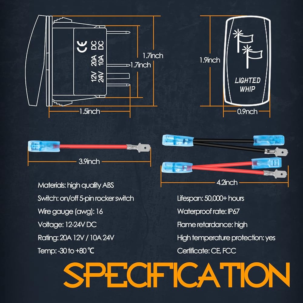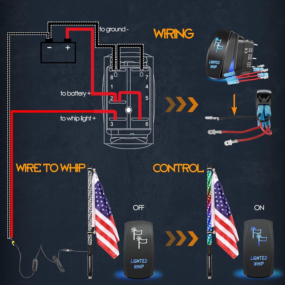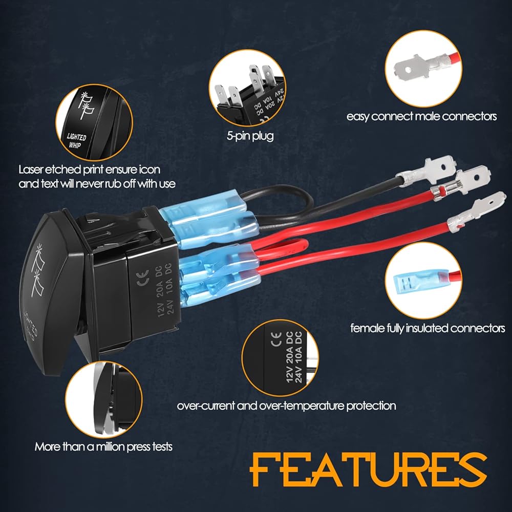PLUG & PLAY - Just insert to your harness and whip light, then install the switch wherever you need it. Very easy to install.