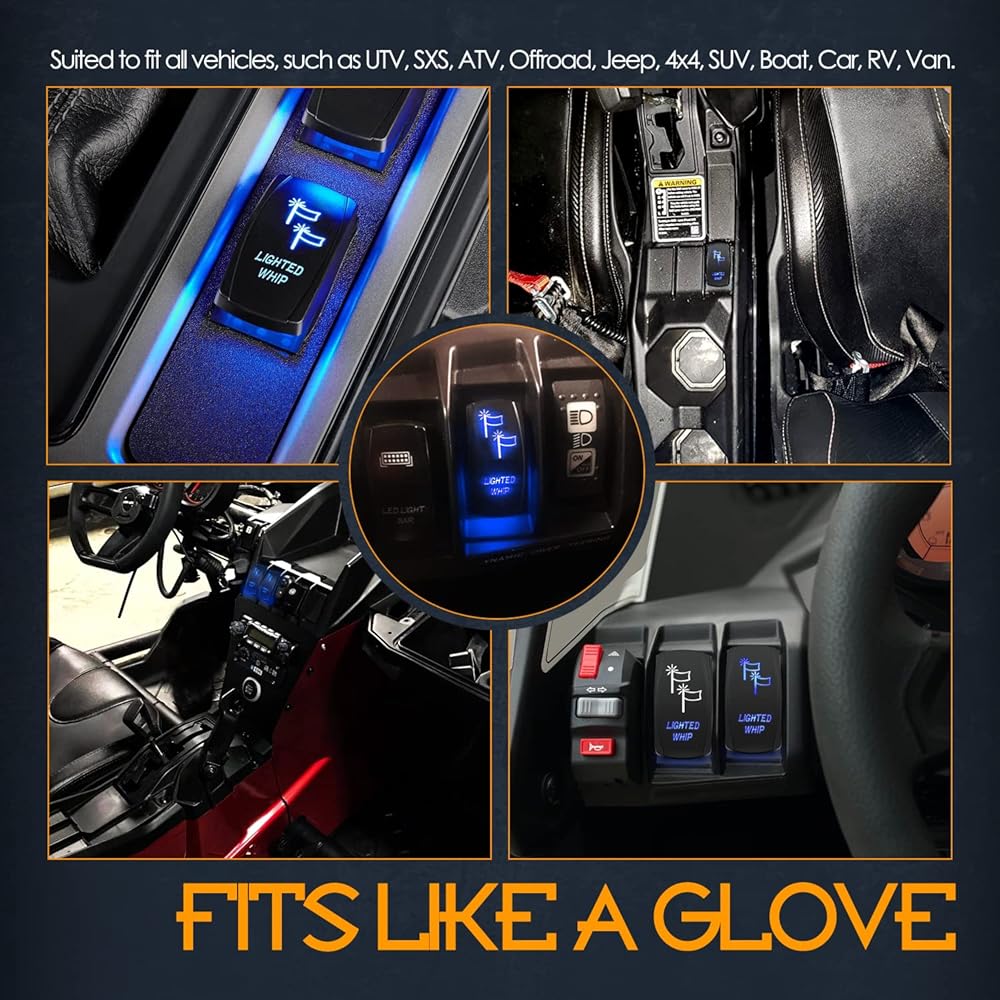 FITS LIKE A GLOVE - Fits all whip lights in the market. Rated at 12V 20A and 24V 10A. Mounting hole size compatible with all vehicles, such as ATV, SXS, UTV, Offroad, Truck, Jeep, 4x4, Car, RV, Van, Boat.
