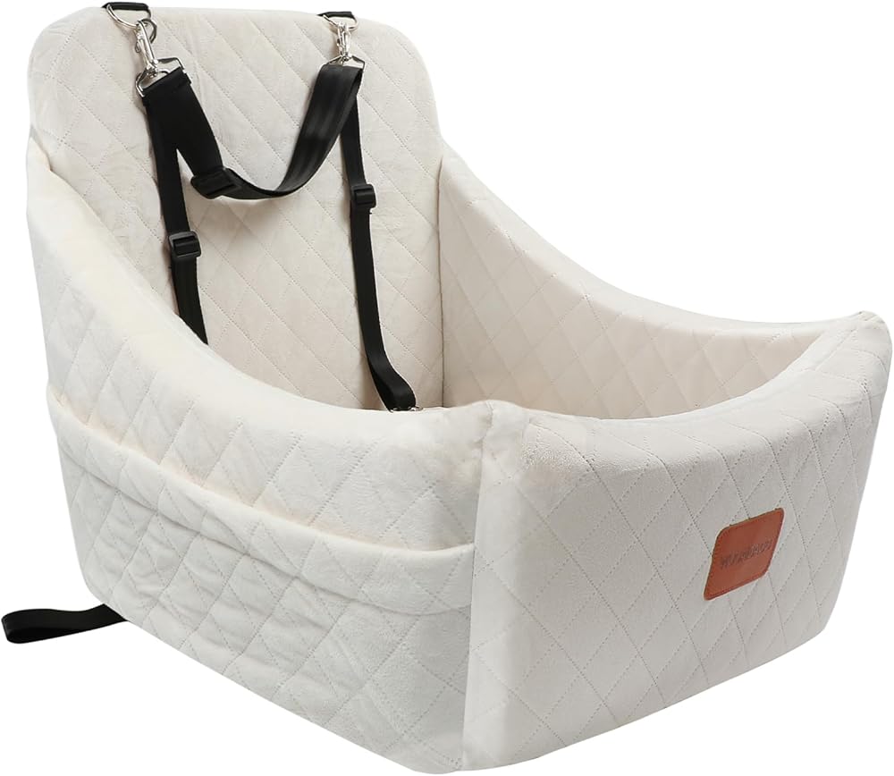 WOOAIDAGG Dog Car Seat for Medium Sized Dog,Pet Travel Car Bed with Seat Belt Channle,Fully Detachable and Washable Car Dog Seat with Adjustable Straps,3 Straps Easy to Install (Beige)