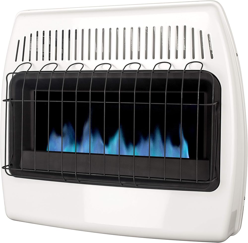 Dyna-Glo wall heaters are the ideal choice for safe, indoor supplemental heating. This state-of-the-art vent free technology does not require a flue or chimney. These heaters are great for use in your home, cabin, or garage. Since these heaters do not require electricity to operate, they make an excellent choice for everyday heating, and emergency situations when the power goes out. Using blue flame heating technology, heat is distributed similar to your central home heating system. This Blue Flame Wall Heater burns with 99. 9% efficiency, and operates on Propane only. Not for sale in California or Canada. Check your local regulations on installation restrictions and requirements. Propane use requires 100-lb. tank or larger with two-stage adjustable regulator available from local gas company. two-stage adjustable regulator available from local gas company. DEPENDABLE - Ideal for daily supplemental or emergency use, such as power outages ECONOMICAL - Cut heating bills by warming only occupied areas COMFORT – Manually adjust the heat setting to your desired temperature SAFE - Built-in oxygen depletion sensor (ODS) immediately shuts down the heater if carbon monoxide or lack of oxygen is detected CONVENIENT – One continuous press of the battery assisted igniter makes ignition quick & effortless VERSATILE - Includes all necessary hardware & bracket for wall mounting UPGRADEABLE - Separately sold optional base legs (WBL100) provide the alternative of floor mounting. Separately sold optional Wall Heater Fan (WHF100) distributes heat in a quiet, yet powerful way.