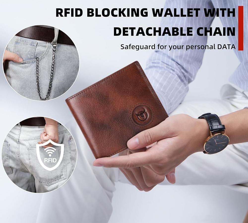 Premium Protection: Crafted from high-quality genuine leather, this bifold wallet is both durable and stylish while also blocking RFID signals from unauthorized scanners.