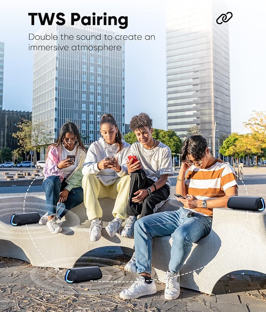 Bluetooth Speaker with HD Sound, Portable Wireless, IPX5 Waterproof, Up to 20H Playtime, TWS Pairing, BT5.3, for Home/Party/Outdoor/Beach, Electronic Gadgets, Birthday Gift (Black)