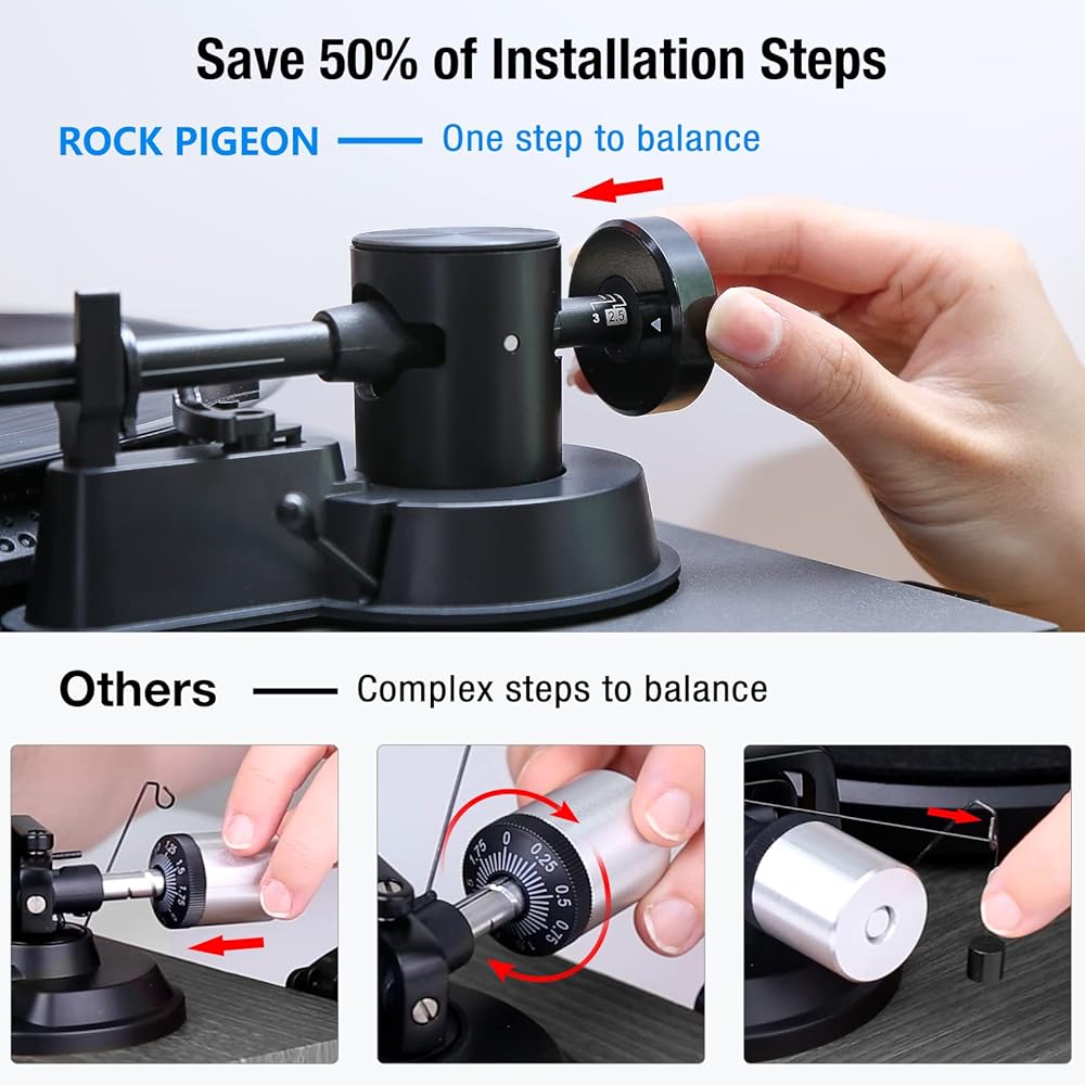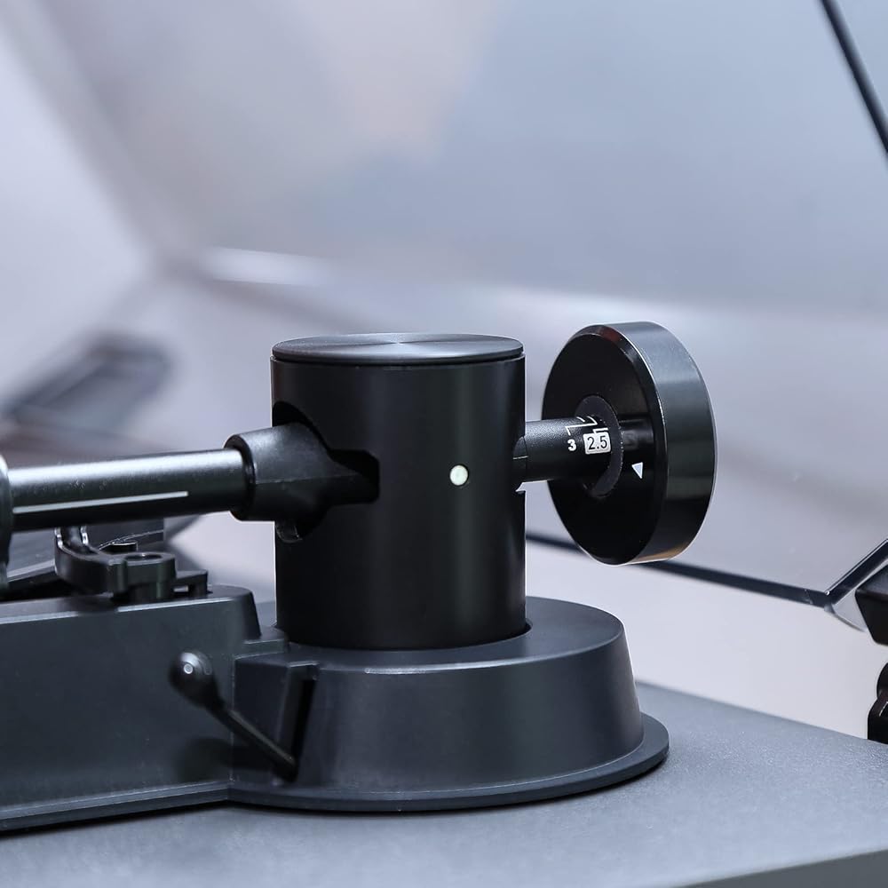 Adjustable Counterweight: The adjustable counterweight enables precise control over the stylus, ensuring it remains balanced and rests deeply within the record's grooves.