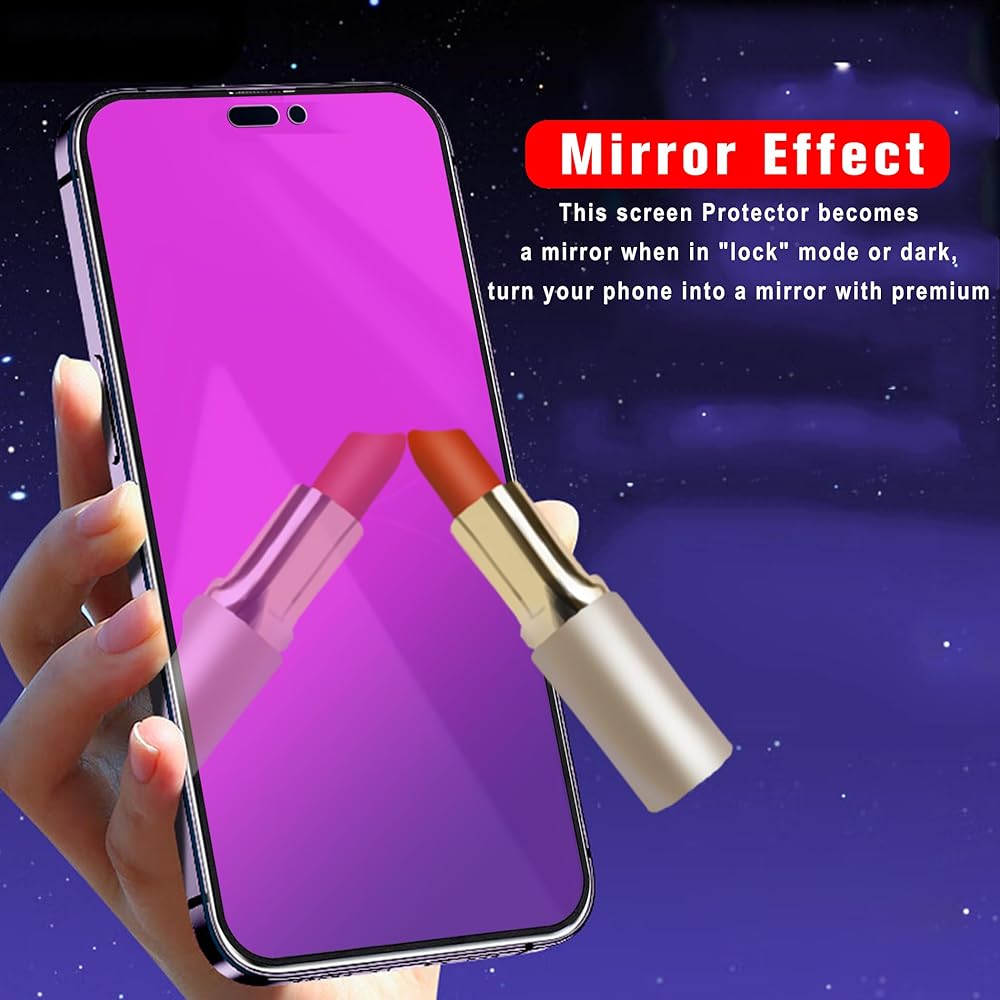 【Mirror Screen Protector】:Tempered glass that becomes a mirror when in “lock” mode or dark, turn your phone into a mirror with premium shatterproof protection! Help you to check your makeup and your appearance anytime you want.