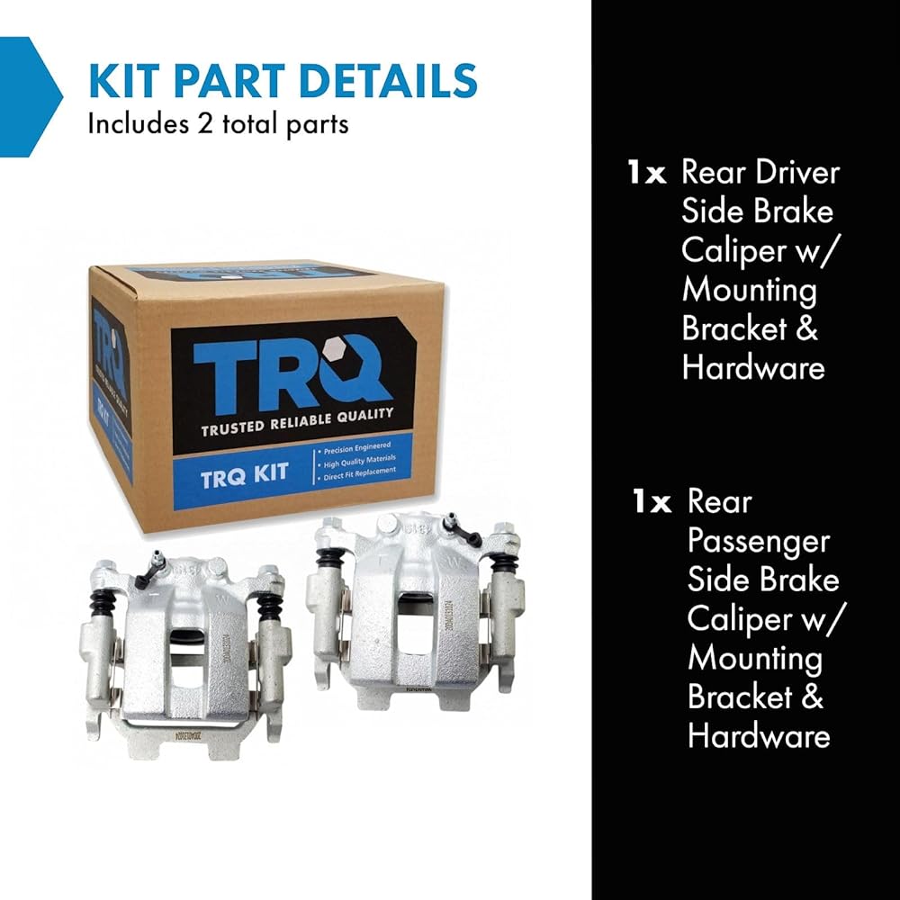 TRQ brake calipers are made from premium raw materials designed to restore original performance. All TRQ calipers are new, so there will never be a core charge with your TRQ purchase. TRQ brake calipers include upgraded seals, washers, abutment kits and brackets where applicable to ensure a complete repair. TRQ recommends replacing your calipers in pairs with new brake pads and brake rotors to ensure components wear evenly and avoid multiple repairs of the same system. All products are fit and road-tested in our Massachusetts R&D facility to ensure we deliver on our promise of Trusted Reliable Quality.