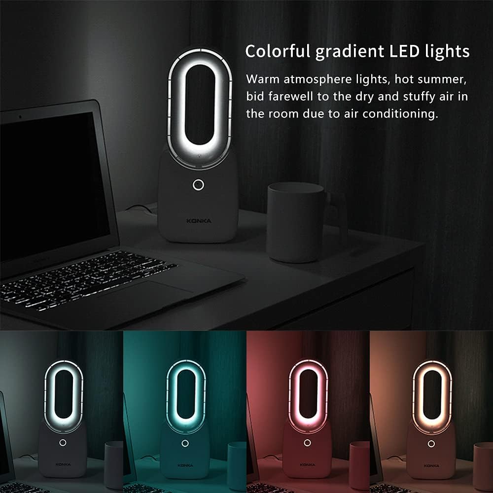 let'me Desk Fan, Small Bladeless Fan Quiet Table Fan, 11.8in Battery Operated Personal Desktop Fan with 5-Colors Lights, Touch Control, Rechargeable Breeze Fan for Bedroom, Office, Home
