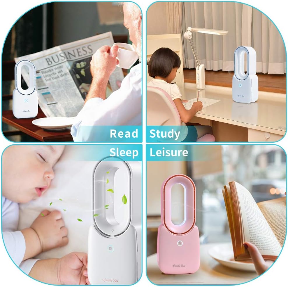 【EXQUISITE GIFT & WORRY-FREE AFTER-SALES】This small fan has a stylish aesthetic design, lightweight and compact, it's a practical gift for family, friends, and yourself! Because this bladeless desk fan is rechargeable, so you can enjoy the breeze anywhere!