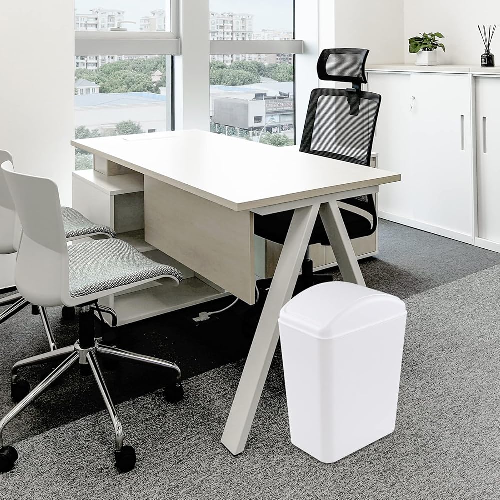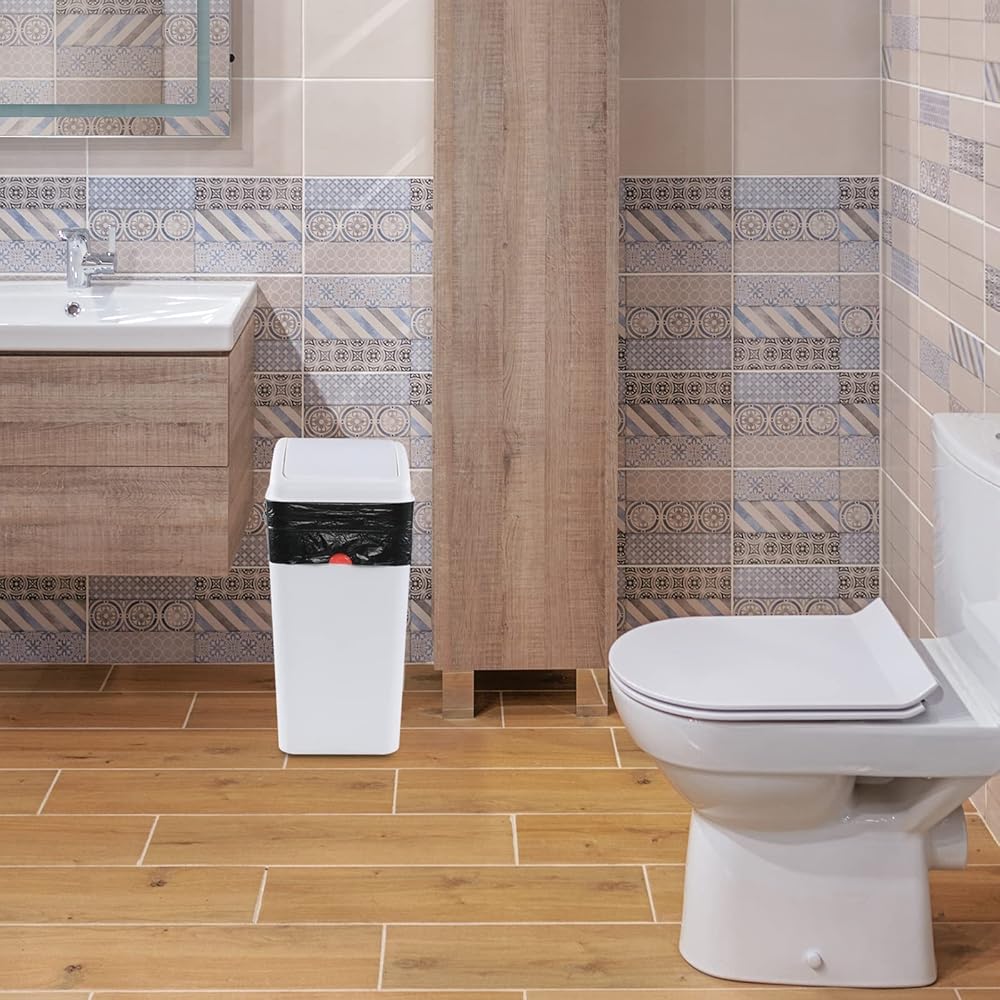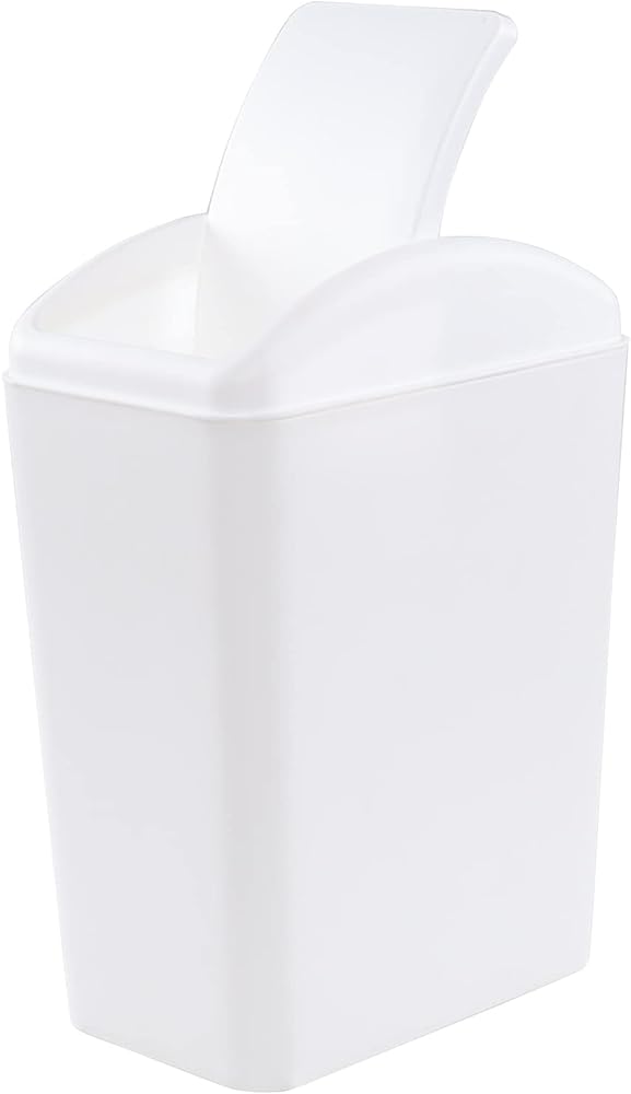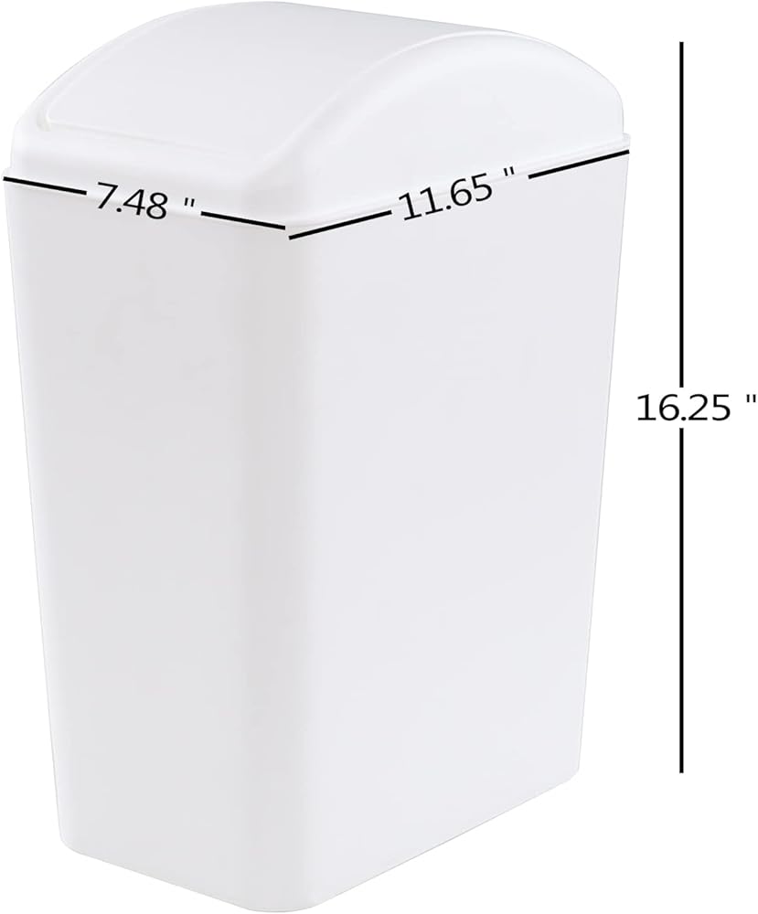 16 Liter Plastic Garbage Can, Waste Bin with Swing Lid (White)