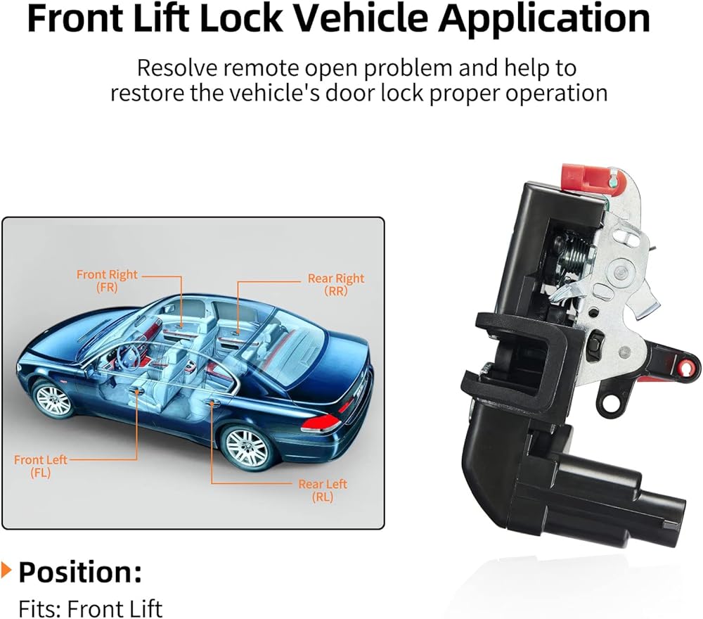 [Positions] - Replace Front Left Driver Side Lock Actuator: If the lifter of your vehicle cannot be locked or is not properly unlocked,the problem may be in the lock actuator, This latch is manufactured to the OE specification to provide factory-fresh appearance and direct-fit, that enables proper door locking function. OE connector helps ensure a solid, positive connection.