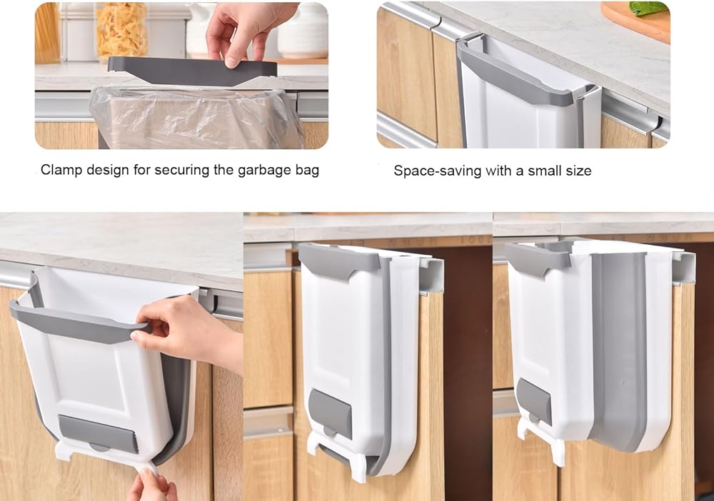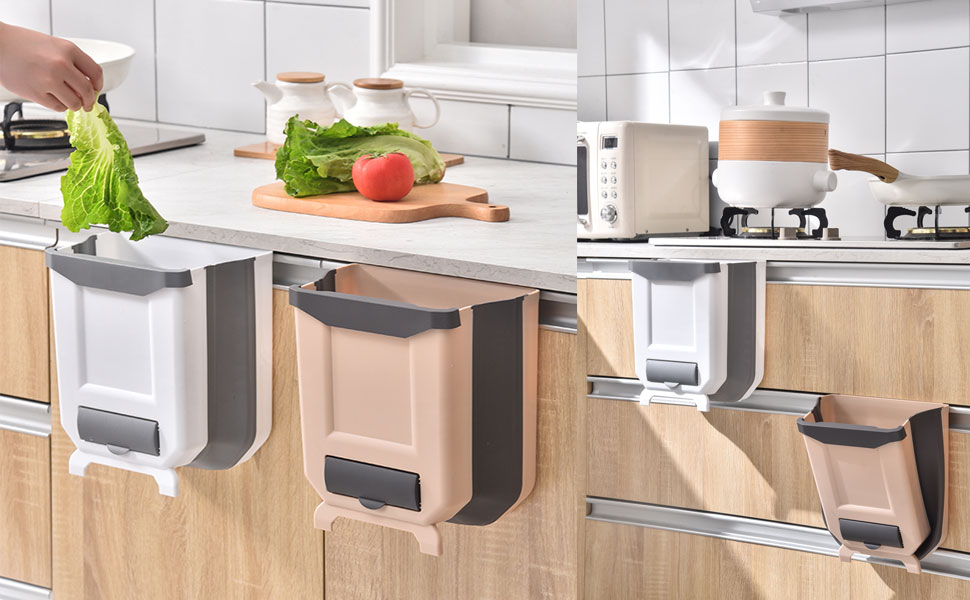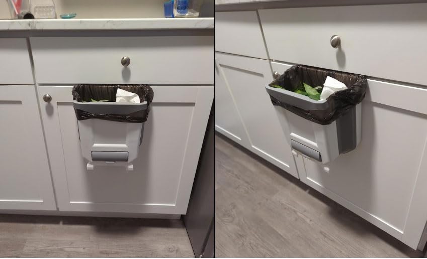 Versatile fit: Hanging trash can With its small size and adjustable hook, this trash can is a perfect fit for most cabinet doors, pantry doors, and cupboards.