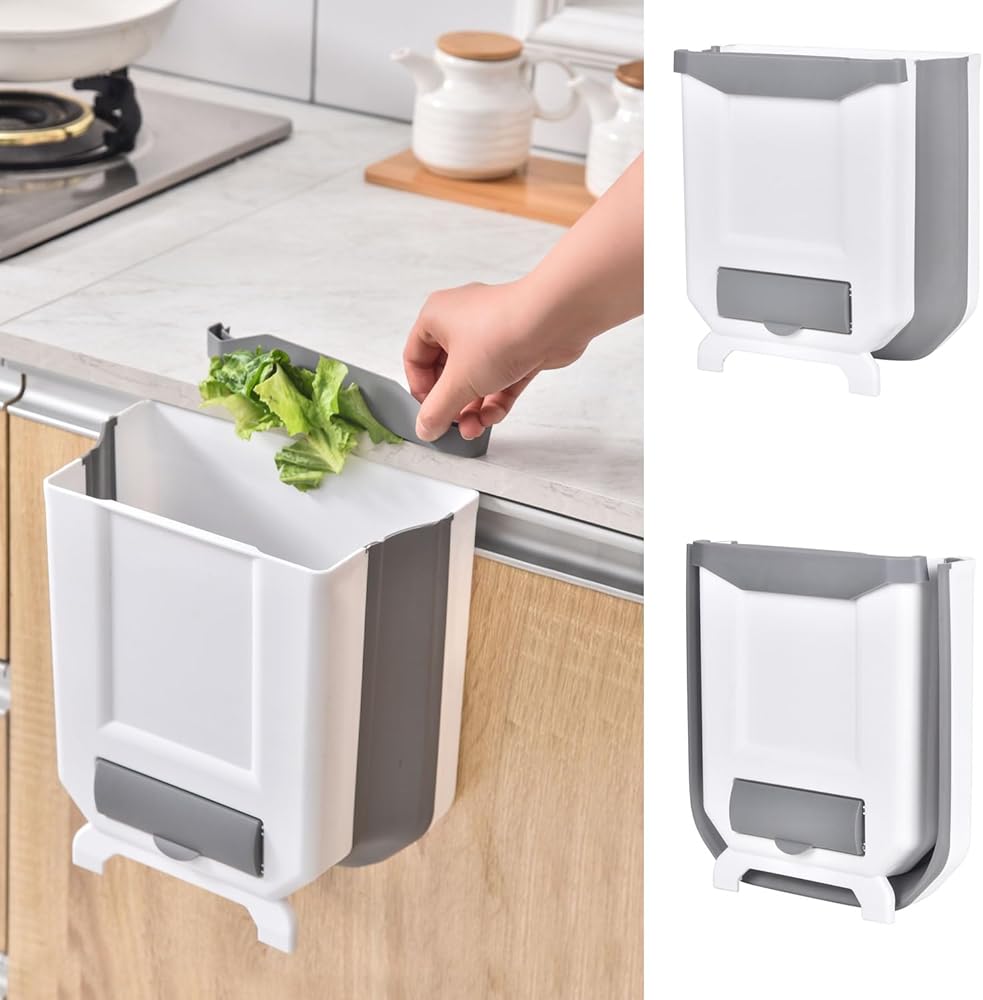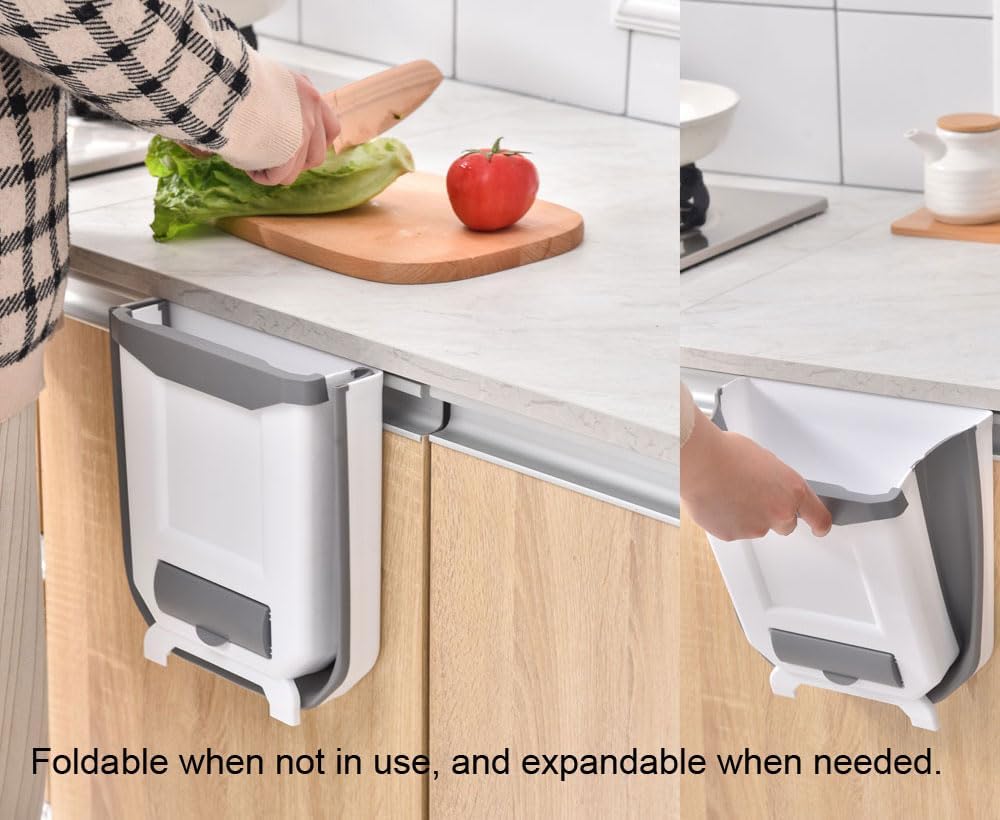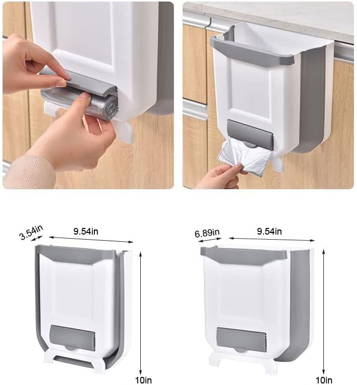 Hanging Kitchen Trash Can 2.4 Gallon White Plastic Collapsible Bin Wall Mounted for Cabinet Door, Perfect for Organizing Small Spaces in Your Home - Hang in Kitchen, Car, Bedroom, or Bathroom!