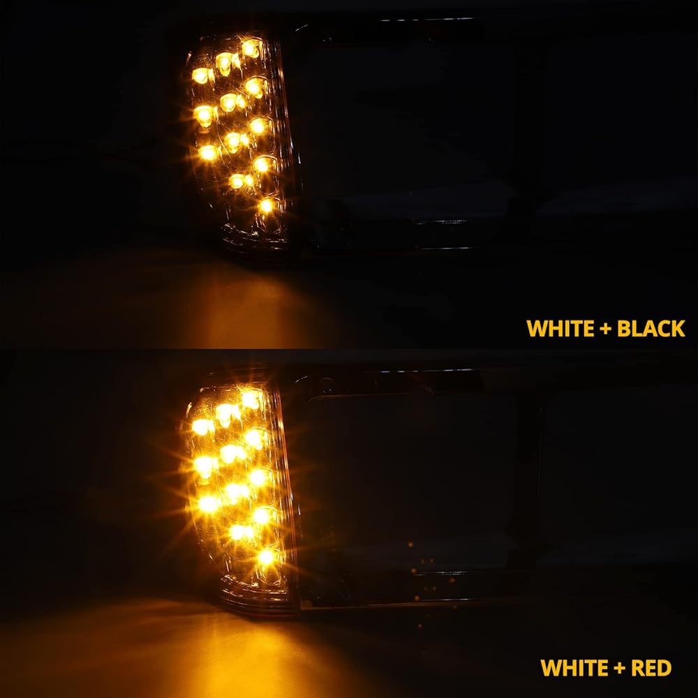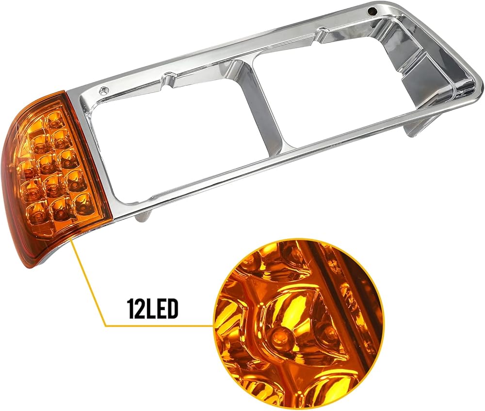 Packgage Included: A pair of Left Driver and Right Passenger Headlight Bezel with Amber LED Turn Signal Marker Light; Condition: 100% Brand New.