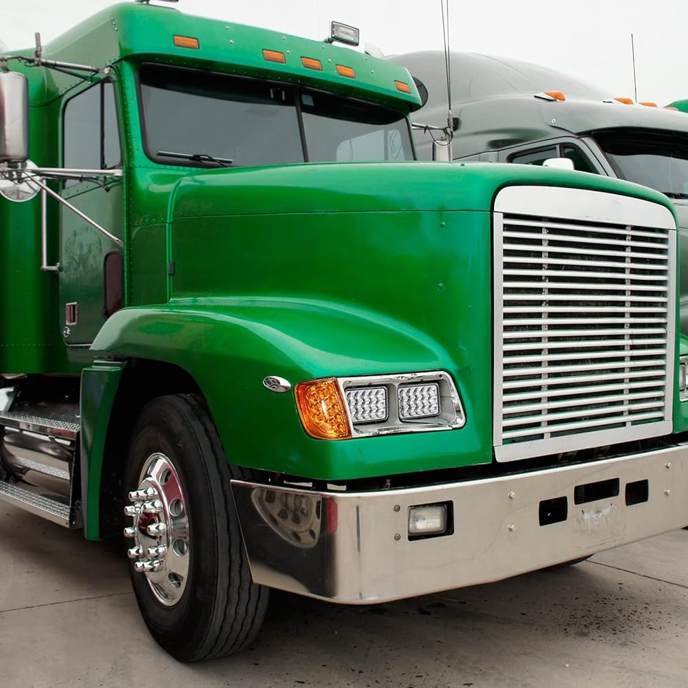 Partsam Pair Headlight Bezel with Amber LED Turn Signal Light 3 Wire Compatible With 1989-2002 Freightliner FLD Truck Replacement For A06-20738-000 A06-20738-001