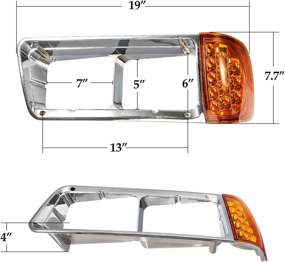 Application: Fit for 1989-2002 Freightliner FLD Headlight Bezel with Amber LED Turn Signal Light; Replacement for A06-20738-000, and A06-20738-001