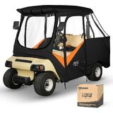 10L0L Golf Cart Driving Enclosure for Club Car DS, 2+2 Passenger Short Roof, Waterproof Windproof Heavy Duty 600D Rain Cover with 4-Sided Clear Windows & Durable Door Zipper, All-Weather Protection