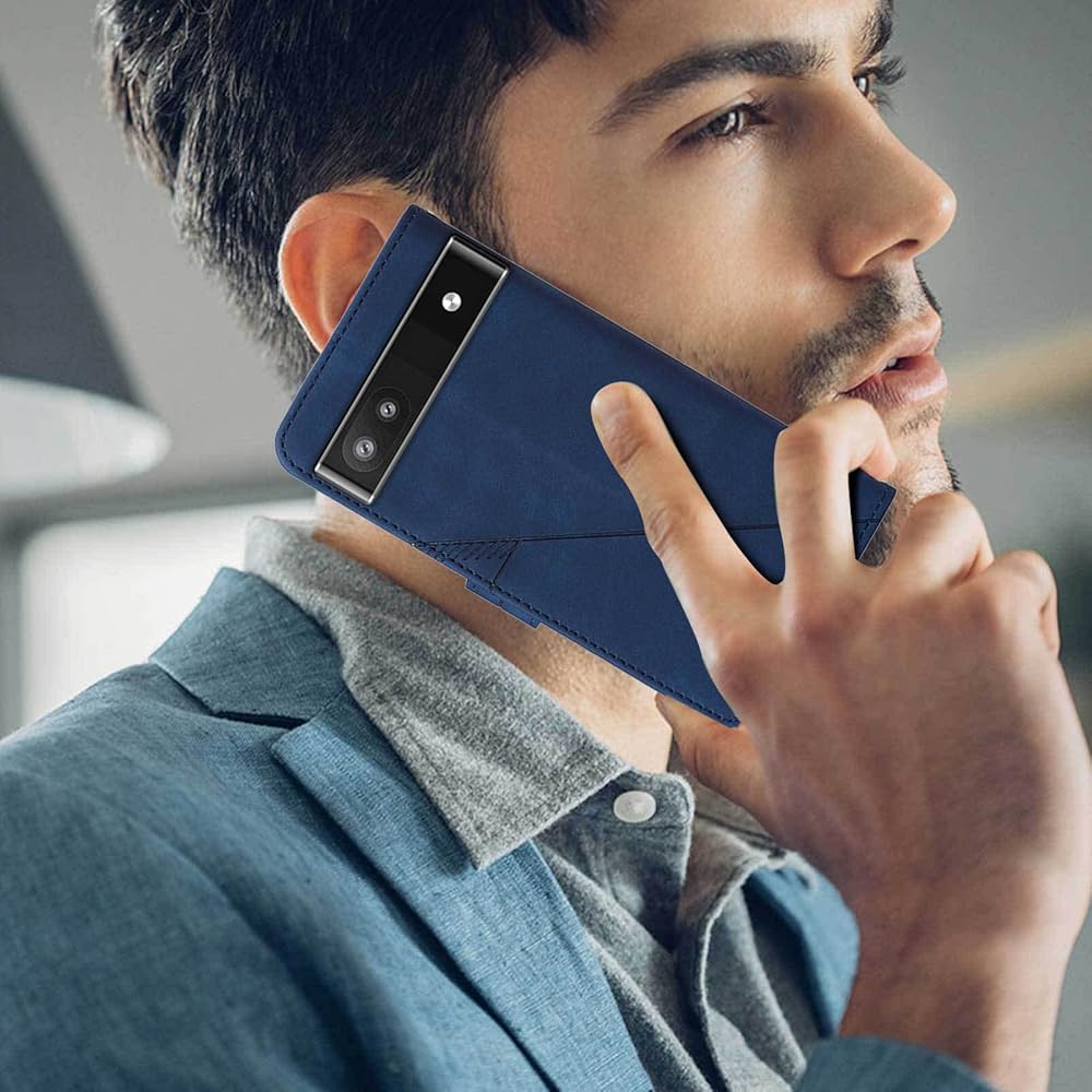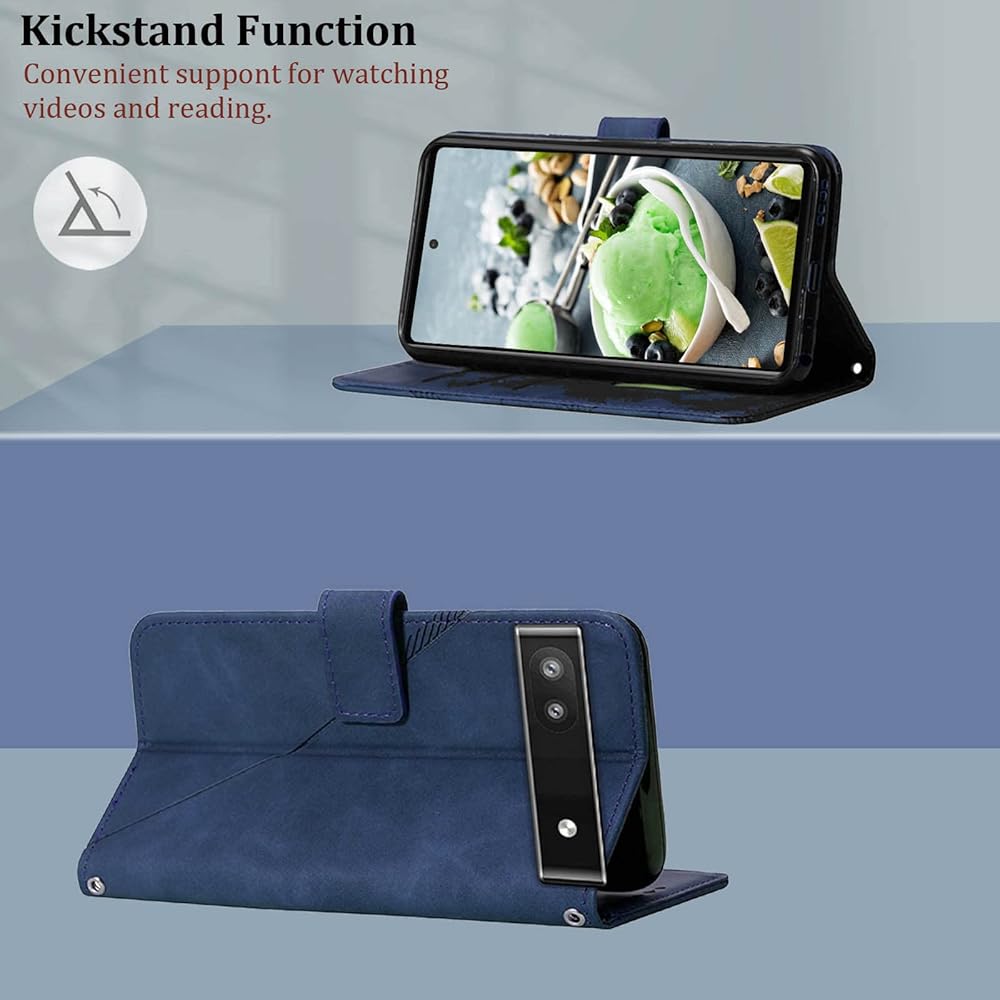 Compatible for Pixel 6a Case Wallet,[Kickstand][Wrist Strap][Card Holder Slots] TPU Interior Protective for Google Pixel 6a Case,PU Leather Folio Flip Cover for Google Pixel 6a - 5G (Blue)