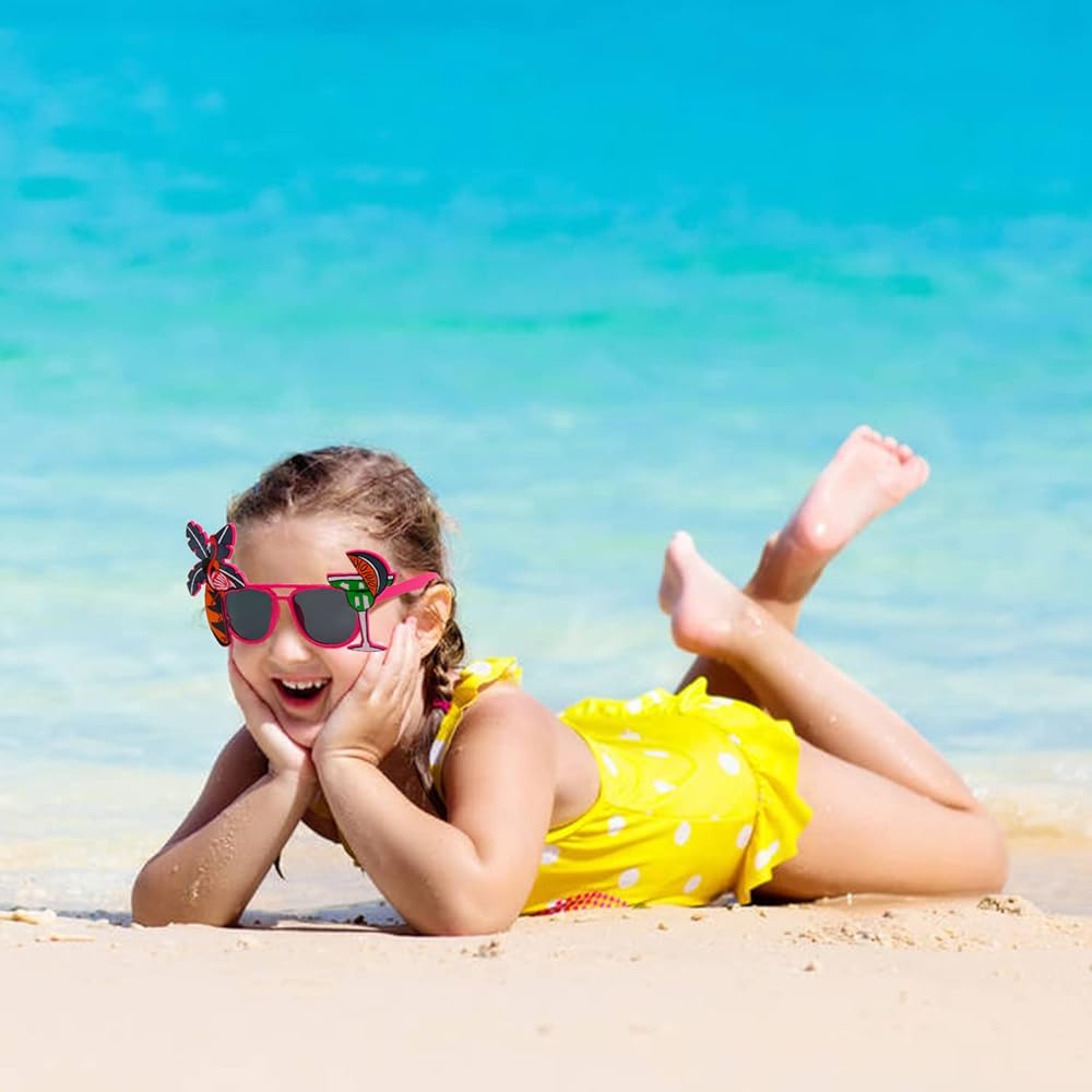 SULOLI Party Sunglasses, 6 Pairs Funny Sunglasses Tropical Fancy Dress Props Summer Party Sunglasses Novelty Eyeglasses for Kids Adults