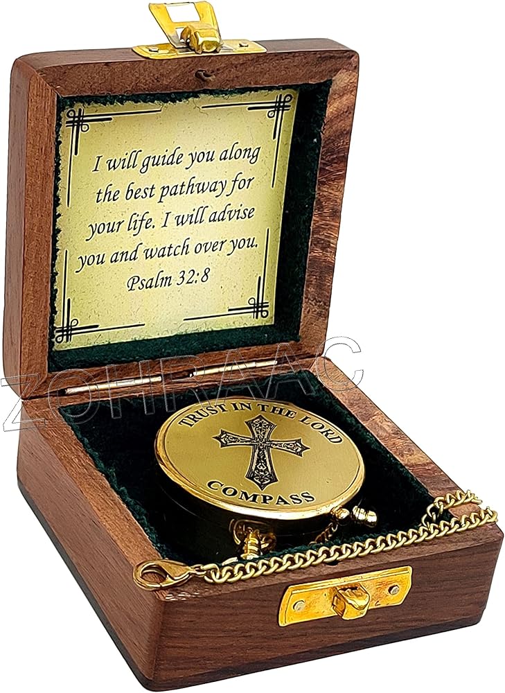 I Will Guide You Psalm 32:8 Lord Compass with Wooden Box Religious Gift, My Soul, My Treasure, My Today, My Tomorrow, Christian Gifts for Men, Catholic Gifts, Confirmation Gift Ideas, Baptism Gifts