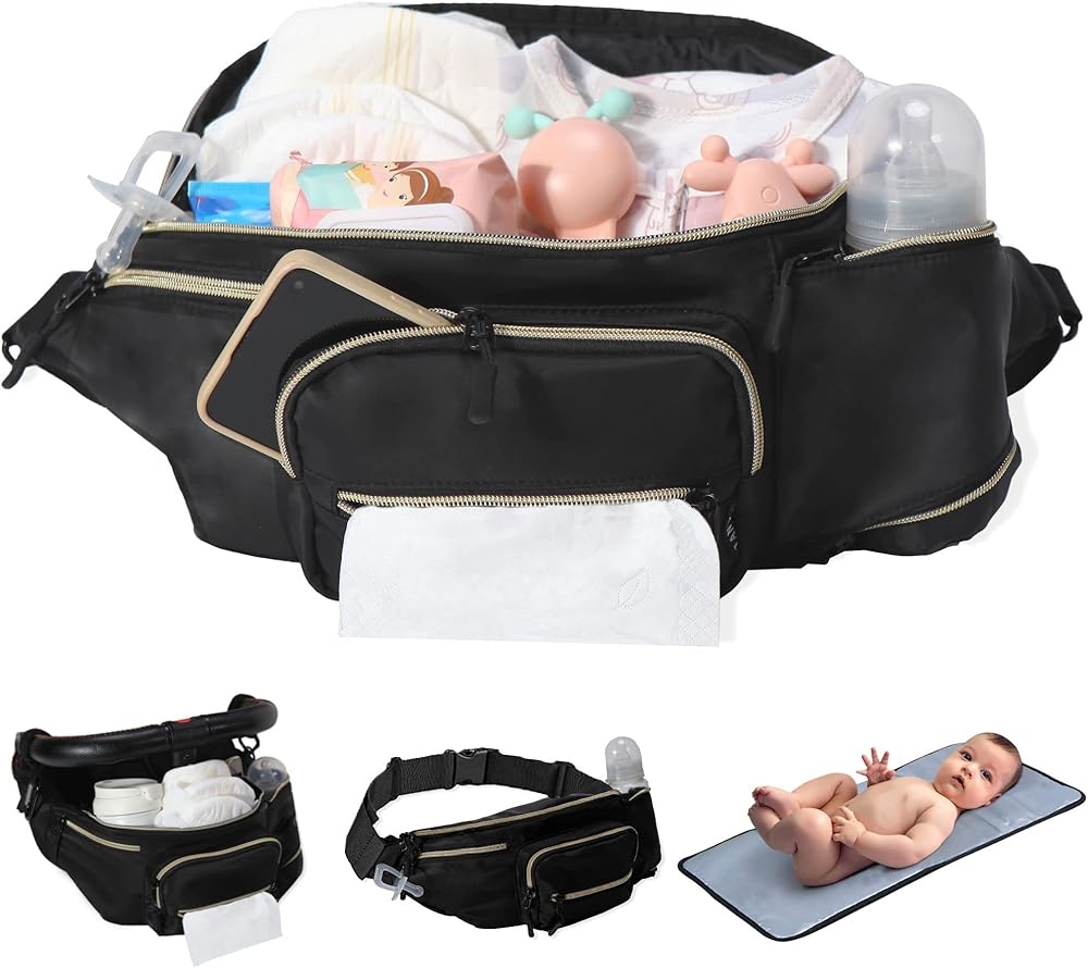 【3 USAGES】It can coordinate the length of the strap, and can be used as a crossbody bag, fanny back diaper bag and baby cart organizer (with 2 velcro hooks, suitable for all models)