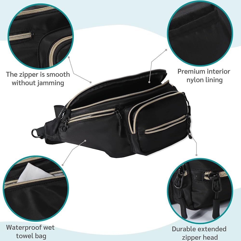 【LARGE CAPACITY】 Large internal space, 15 inches wide, larger than the ordinary fanny back bag, which can hold the baby's supplies for 2 days' travel